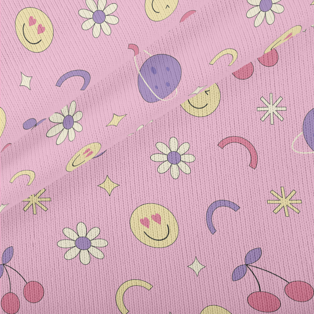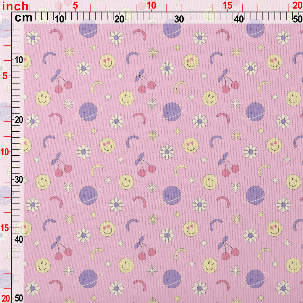 表情符號花朵星球圖案仿毛衣布(幅寬150公分)