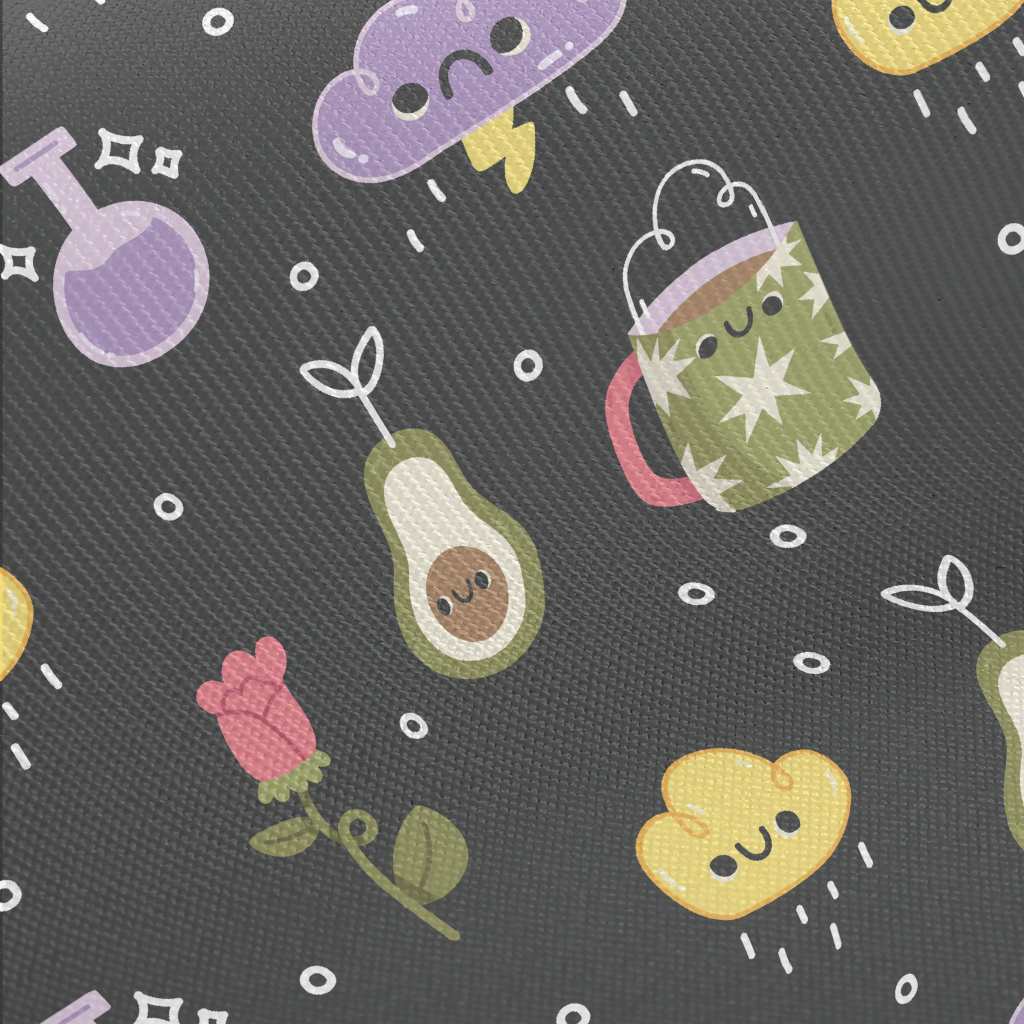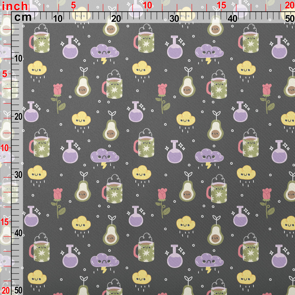 可愛表情杯子雲朵酪梨厚棉布(幅寬150公分)