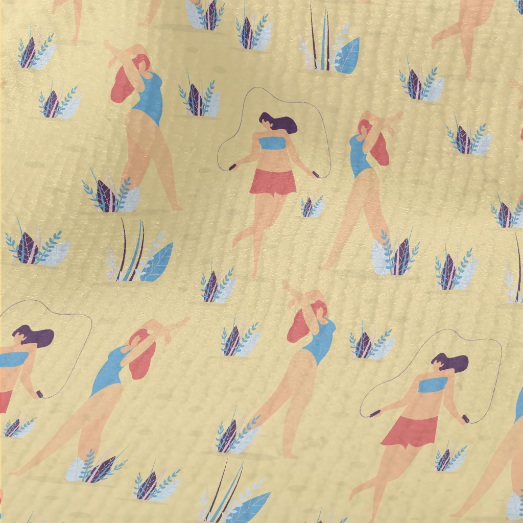 在沙灘玩耍的女人們毛巾布(幅寬160公分)
