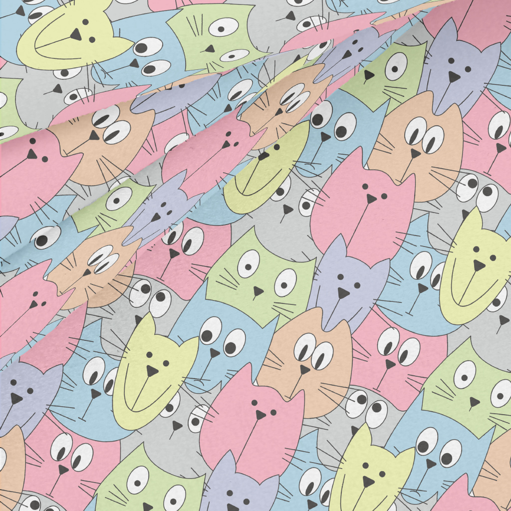 美式塗鴉彩色貓咪水晶絨(幅寬160公分)