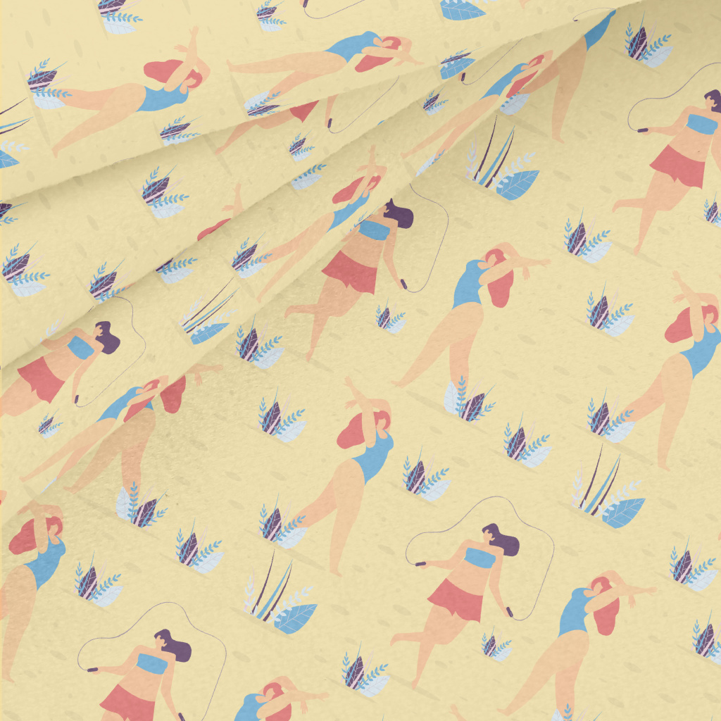 在沙灘玩耍的女人們水晶絨(幅寬160公分)