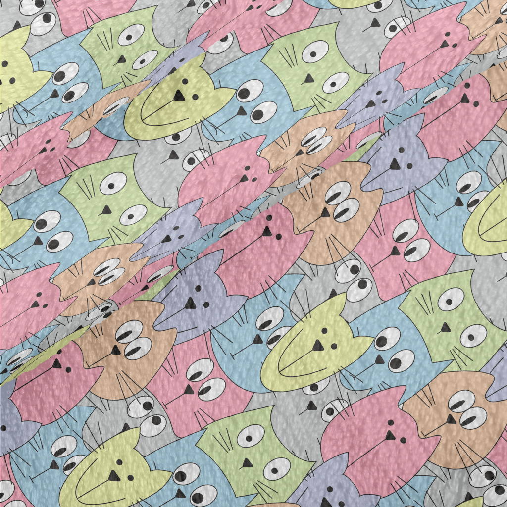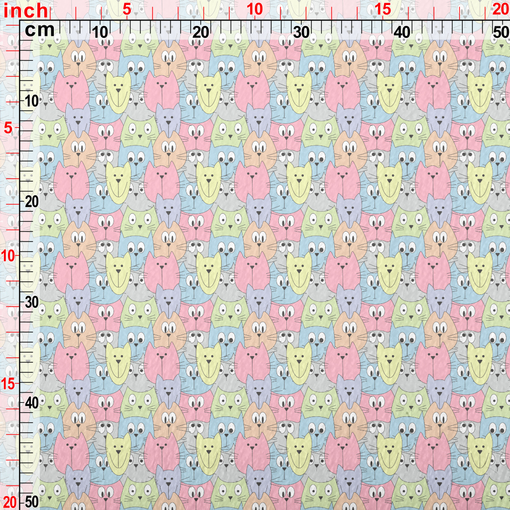 美式塗鴉彩色貓咪法蘭絨(幅寬150公分)