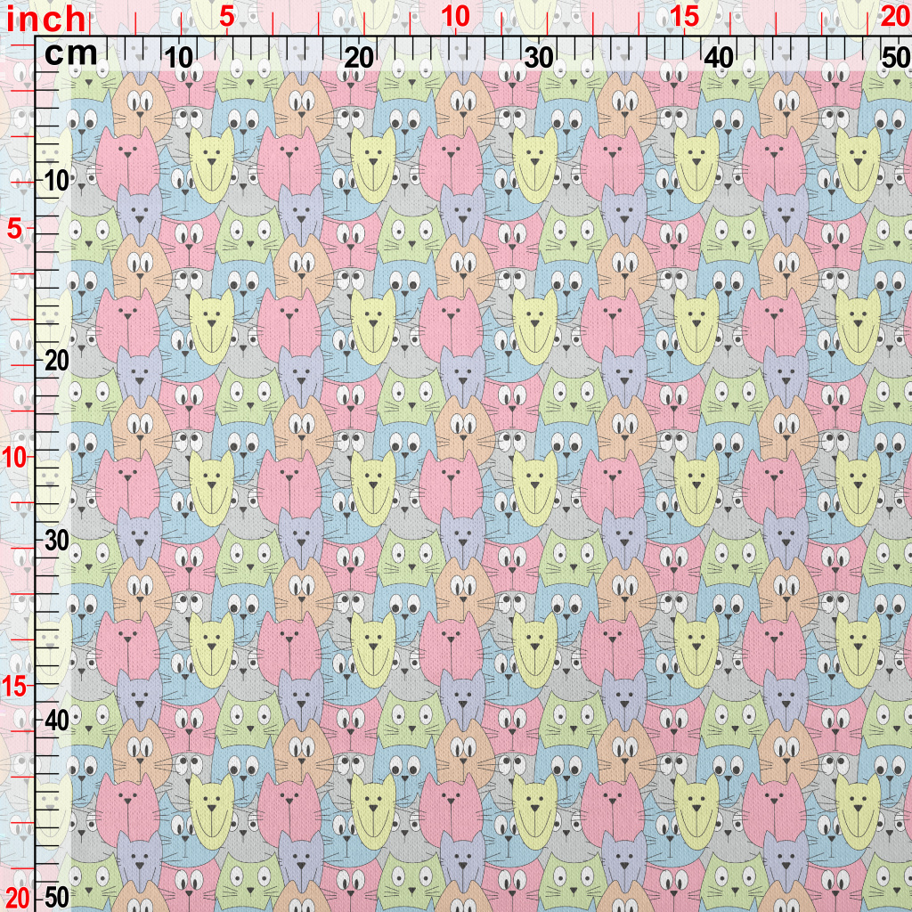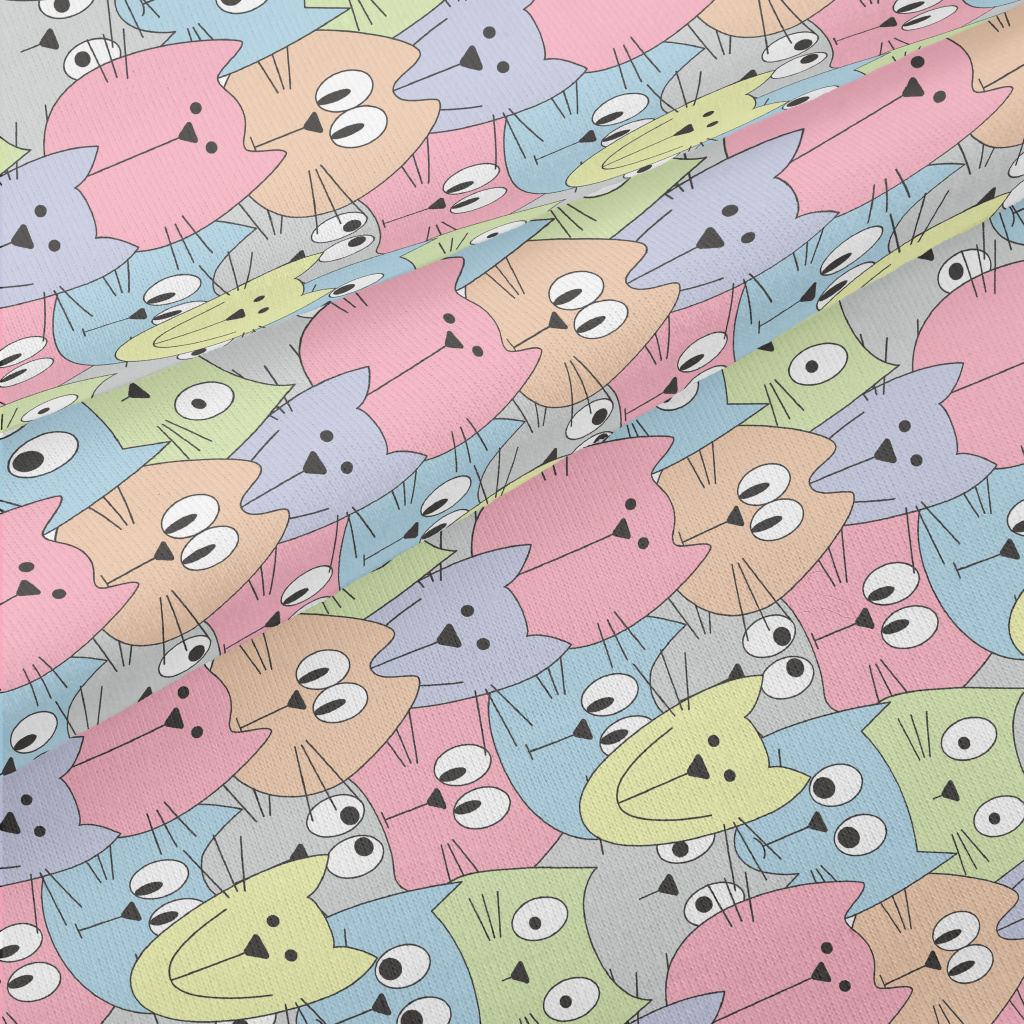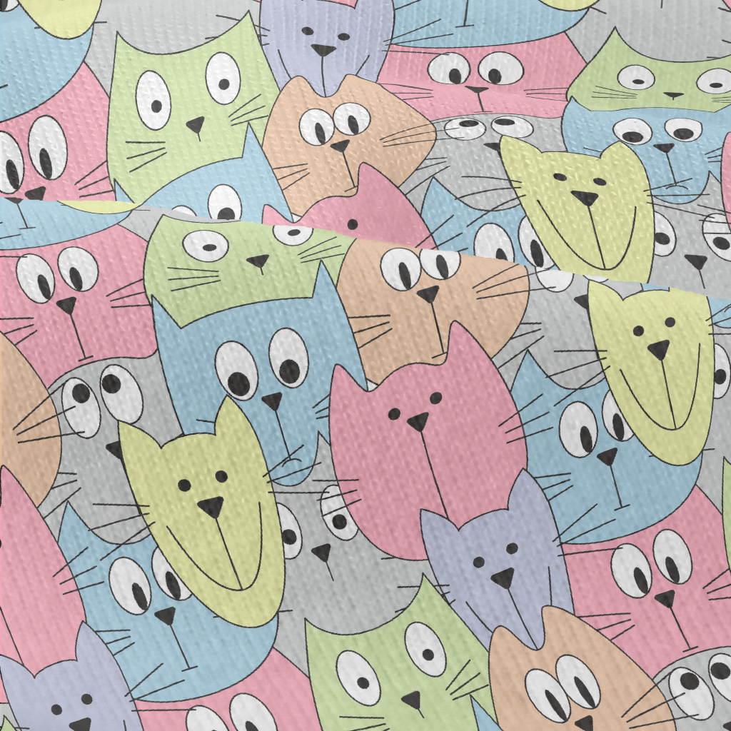 美式塗鴉彩色貓咪仿棉布(幅寬150公分)