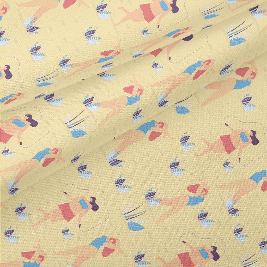 在沙灘玩耍的女人們仿棉布(幅寬150公分)