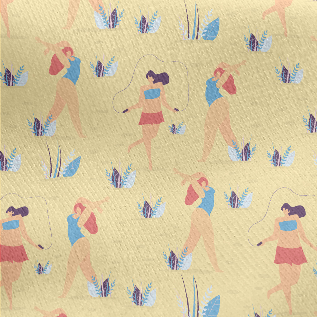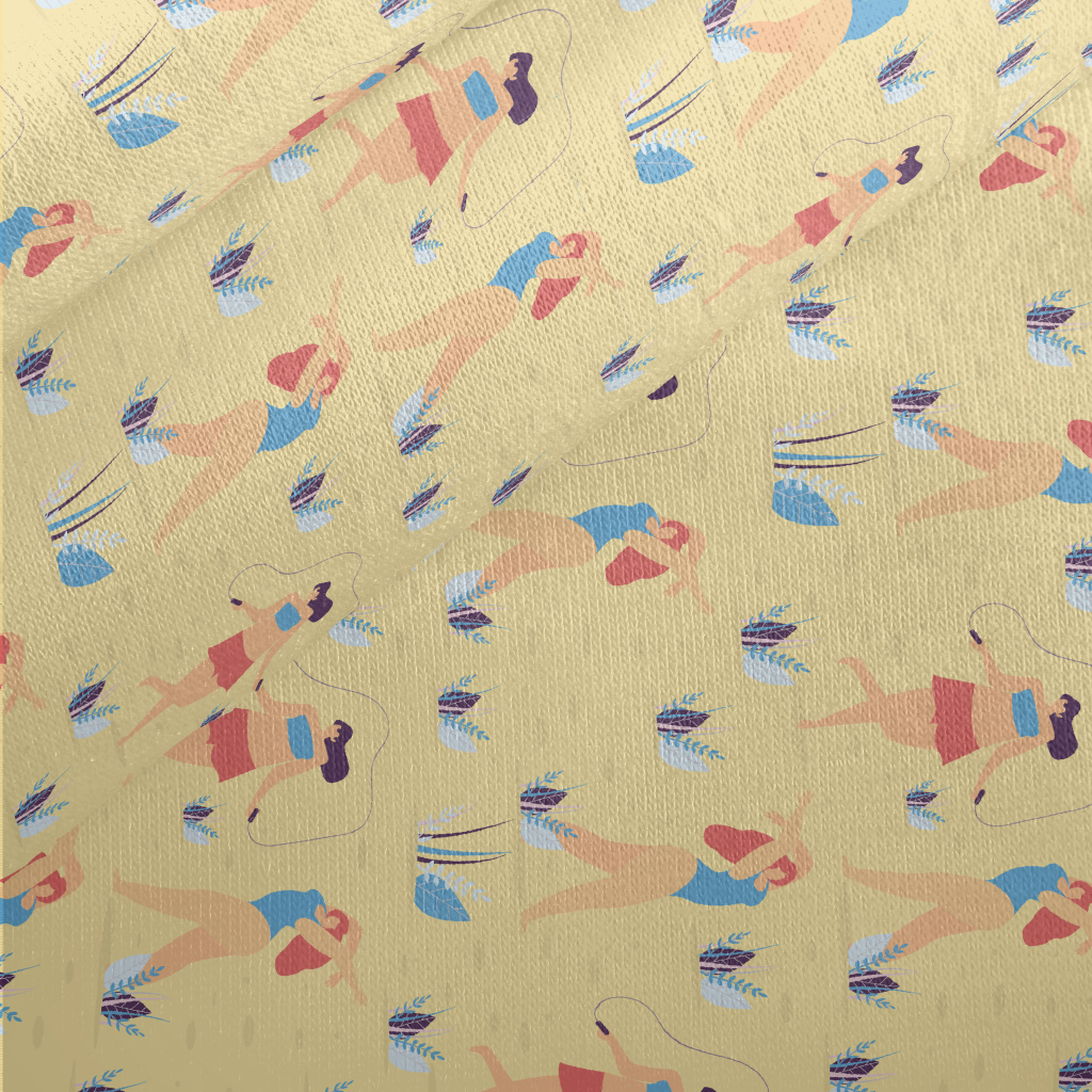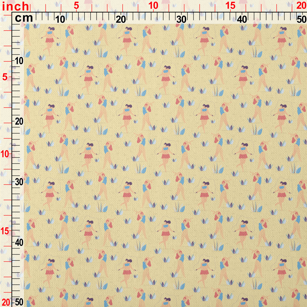 在沙灘玩耍的女人們刷毛布(幅寬150公分)
