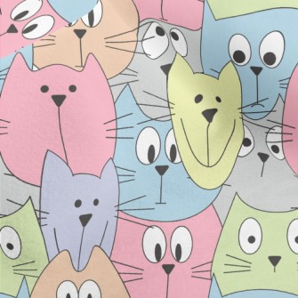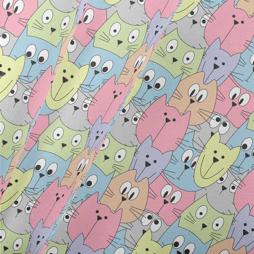 美式塗鴉彩色貓咪春亞紡(幅寬160公分)