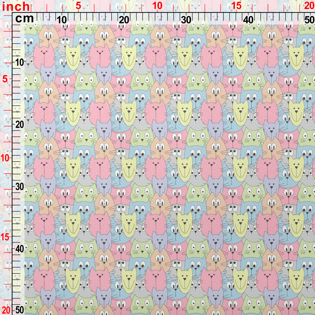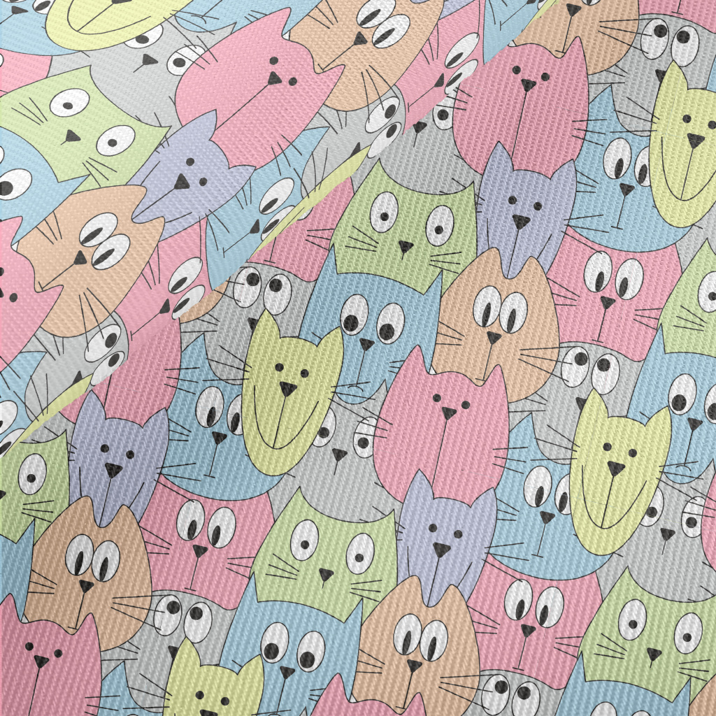 美式塗鴉彩色貓咪厚棉布(幅寬150公分)