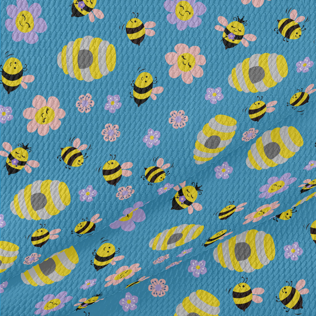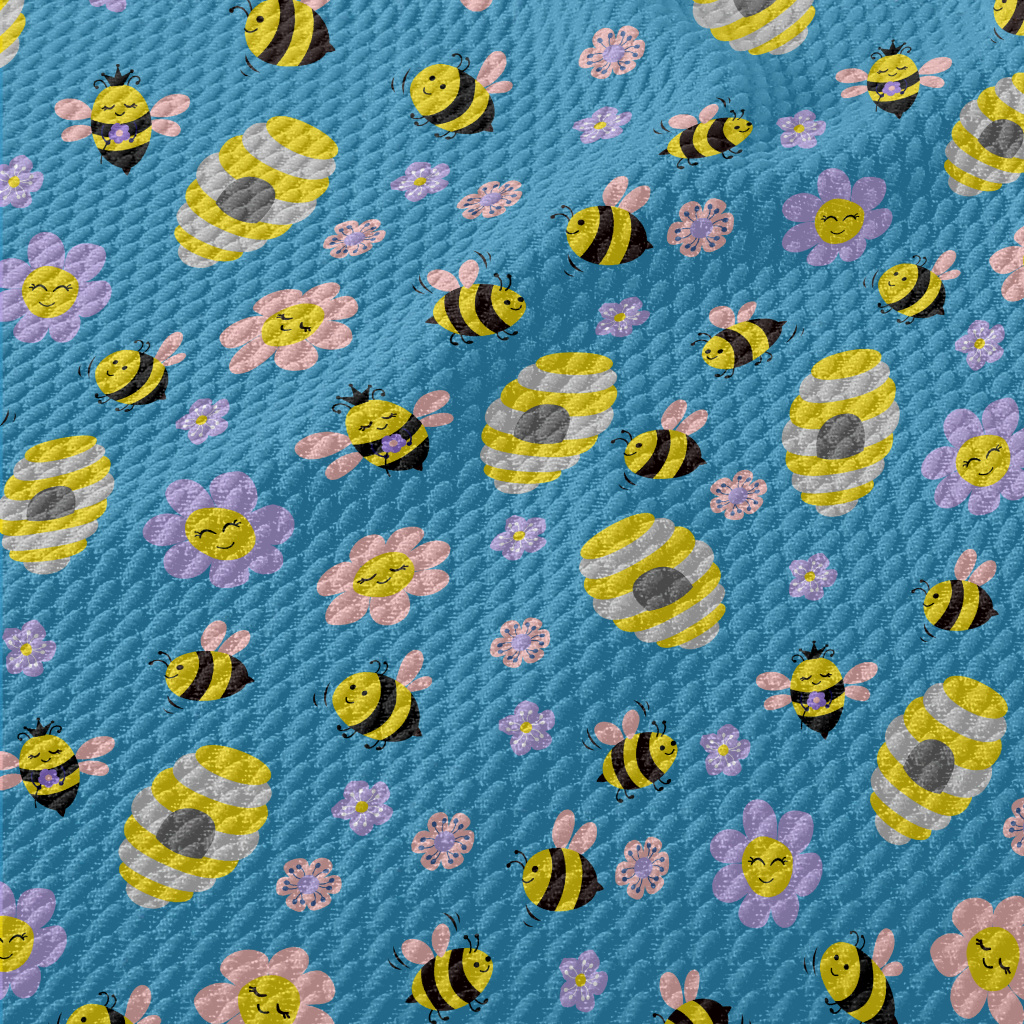 卡通蜜蜂和蜂窩花朵泡泡布(幅寬160公分)
