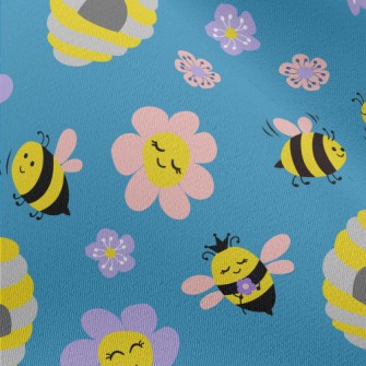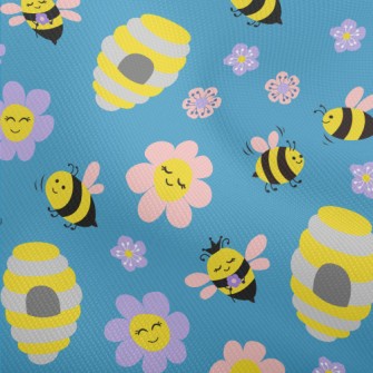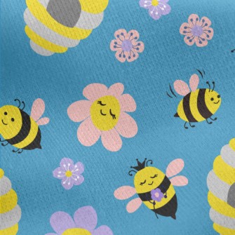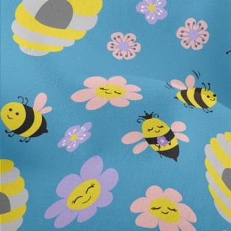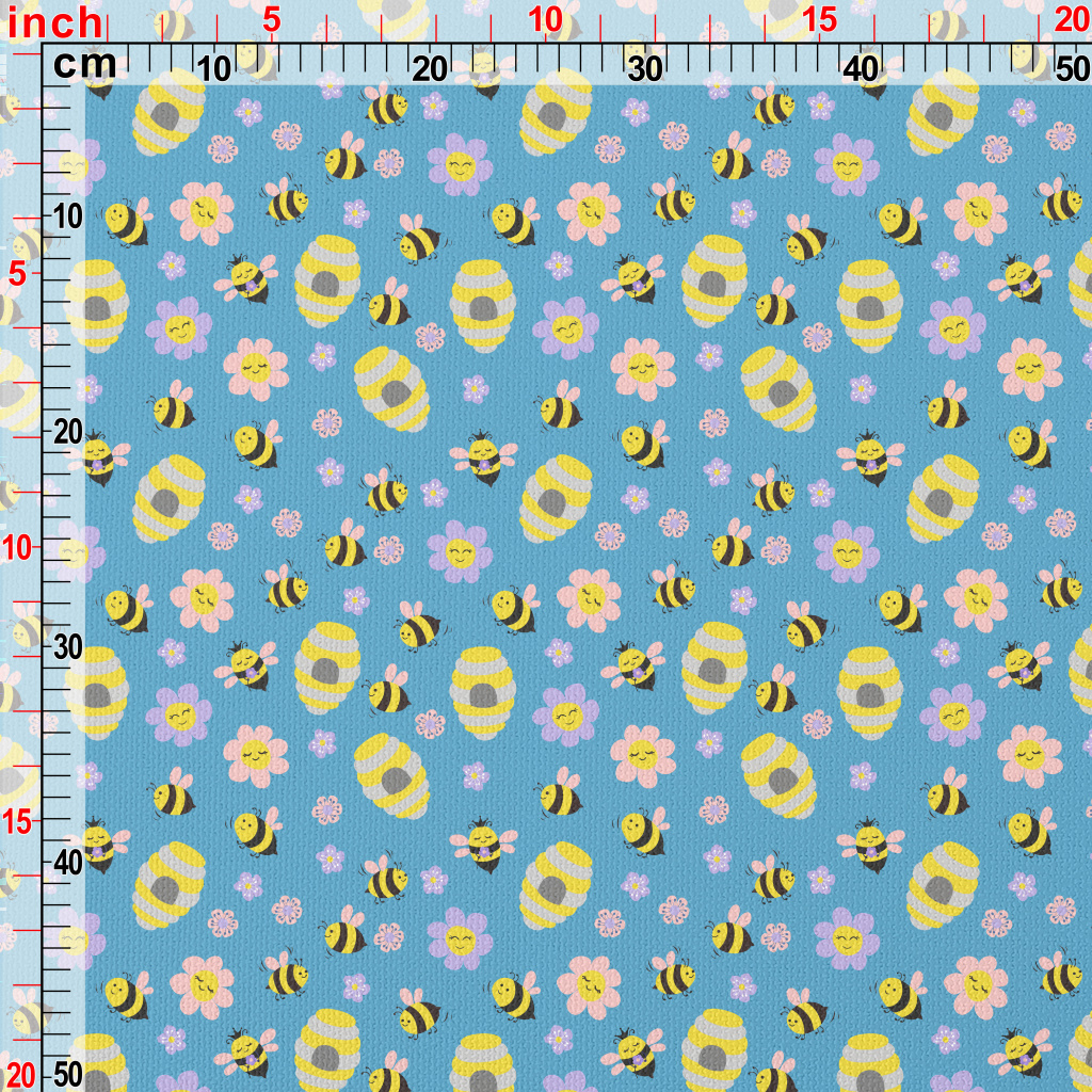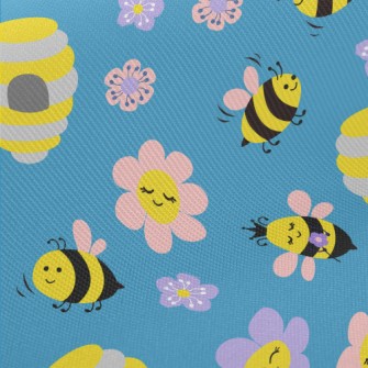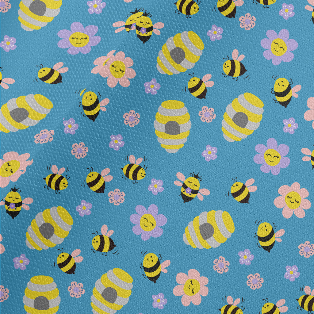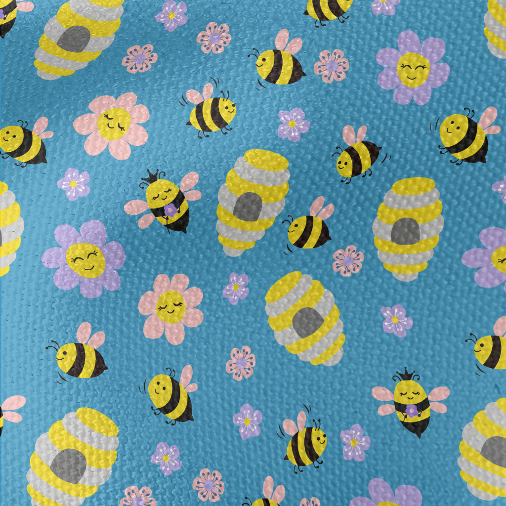 卡通蜜蜂和蜂窩花朵帆布(幅寬150公分)