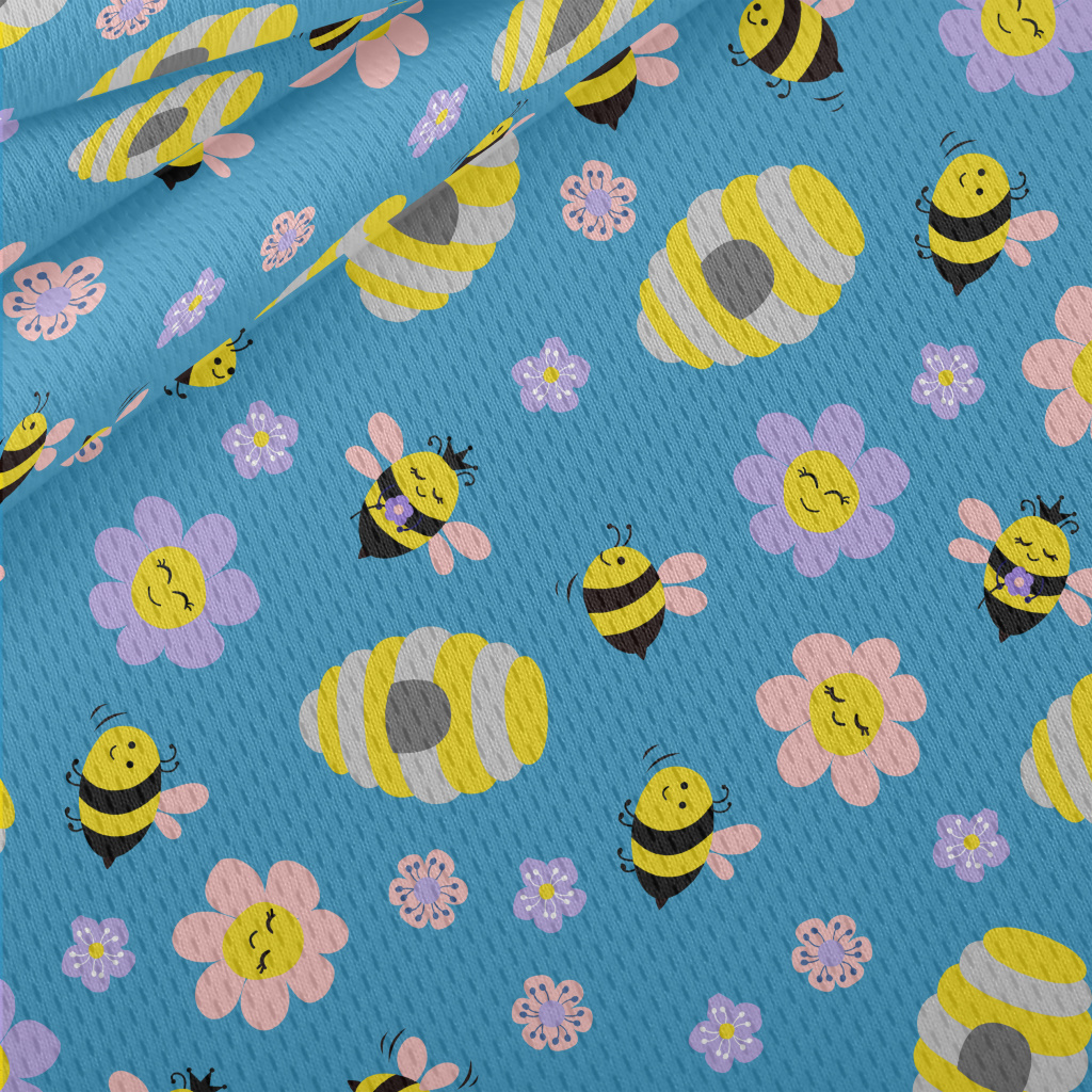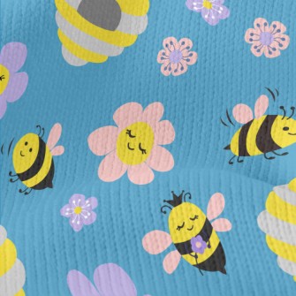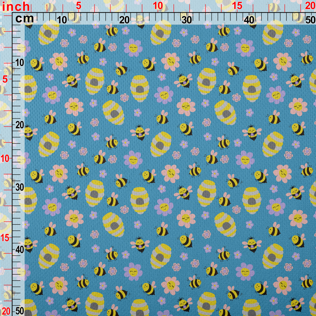 卡通蜜蜂和蜂窩花朵鳥眼布(幅寬160公分)