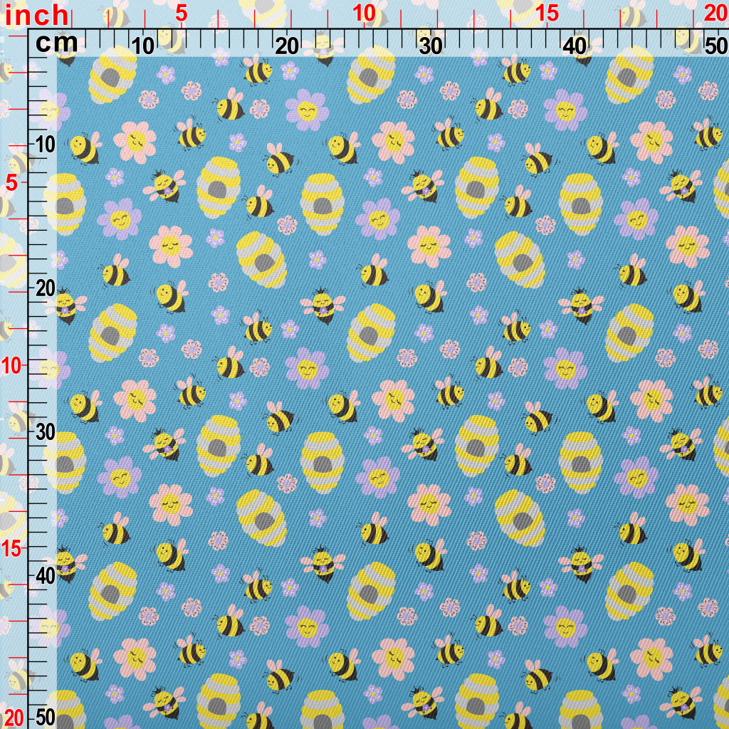 卡通蜜蜂和蜂窩花朵斜紋布(幅寬150公分)