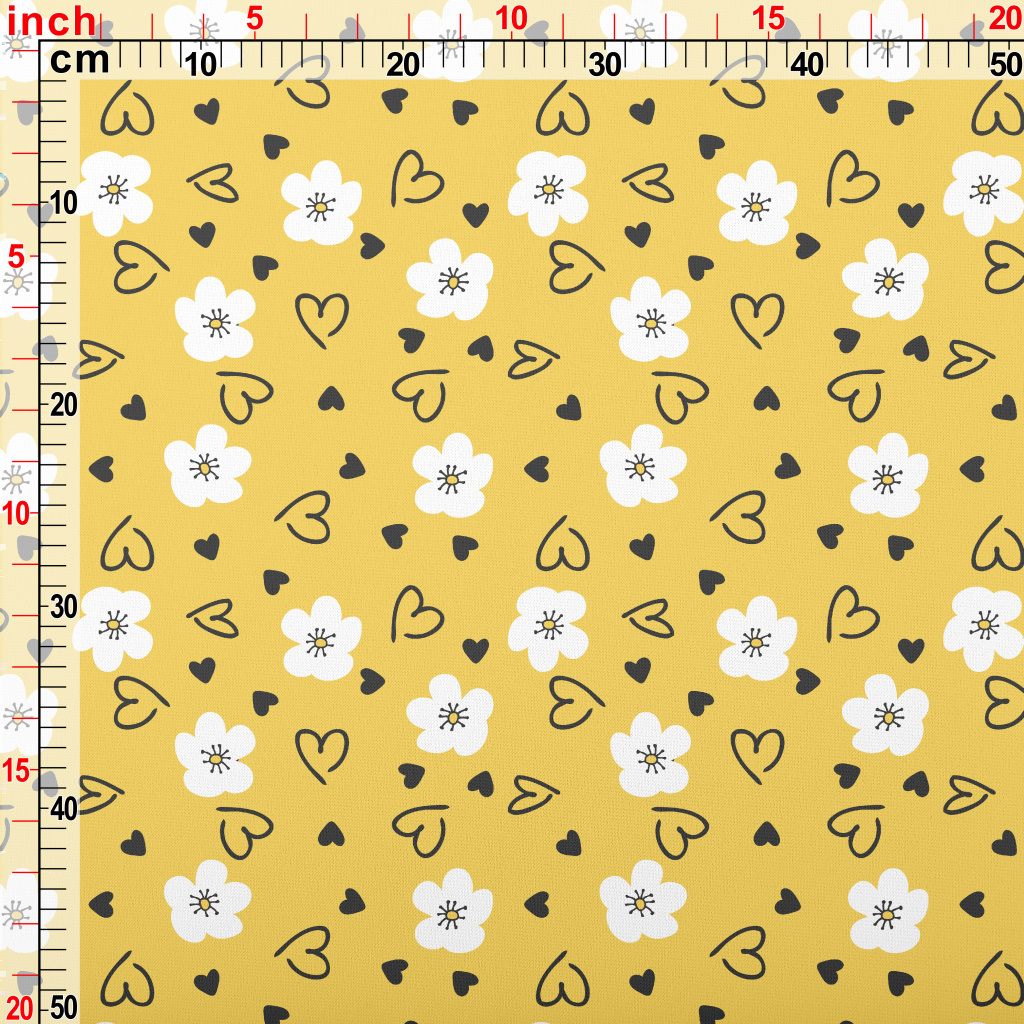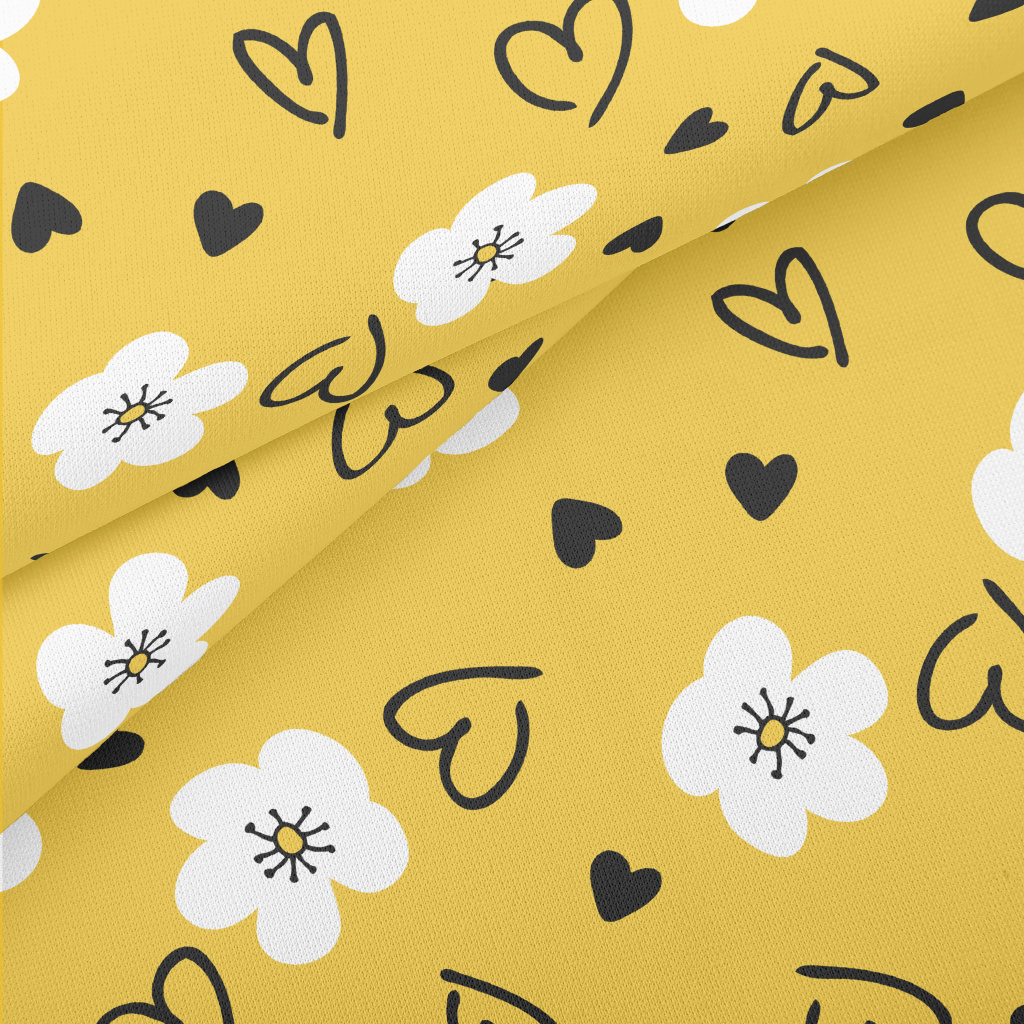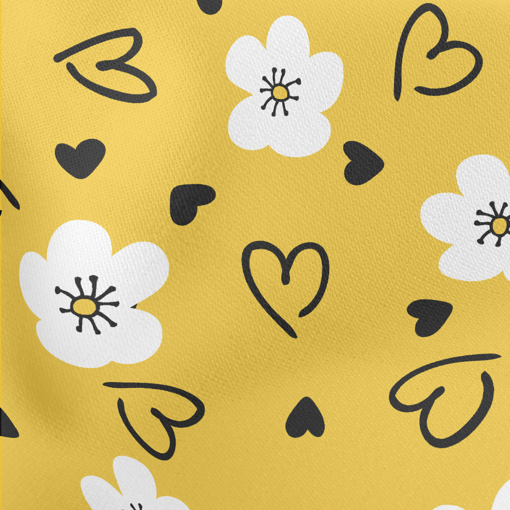 塗鴉白色花朵和愛心羅馬布(幅寬160公分)
