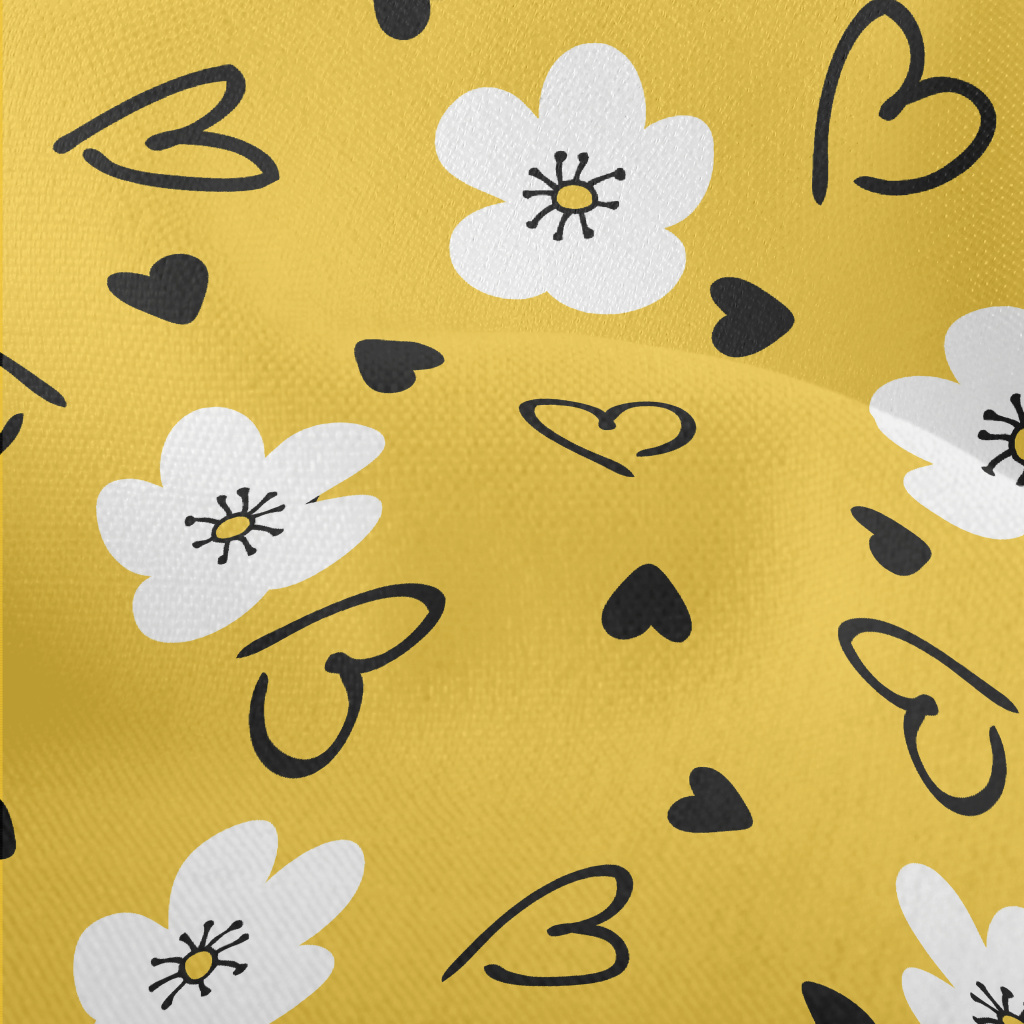 塗鴉白色花朵和愛心竹節麻(幅寬150公分)