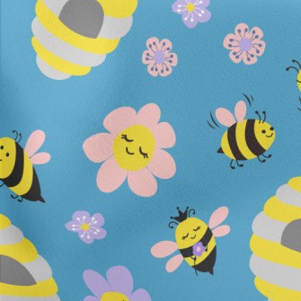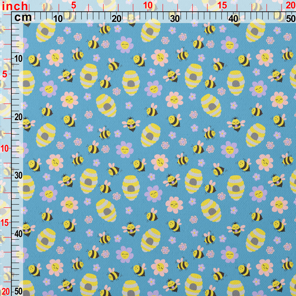 卡通蜜蜂和蜂窩花朵竹節麻(幅寬150公分)