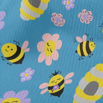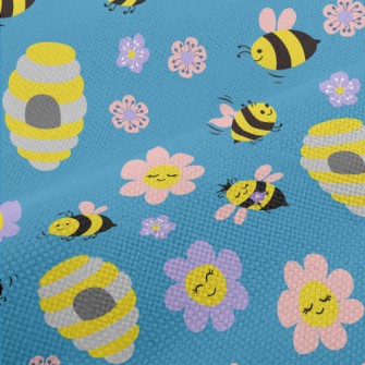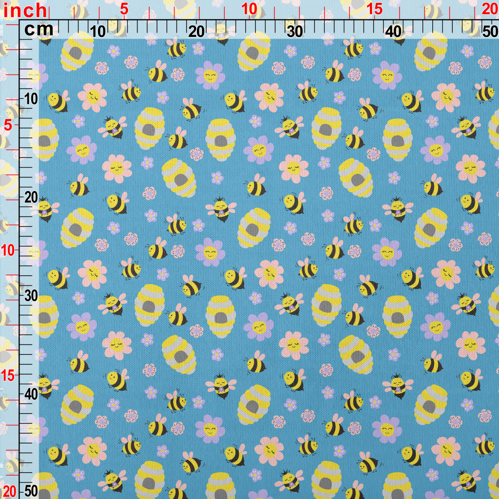 卡通蜜蜂和蜂窩花朵仿棉布(幅寬150公分)