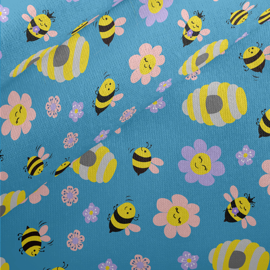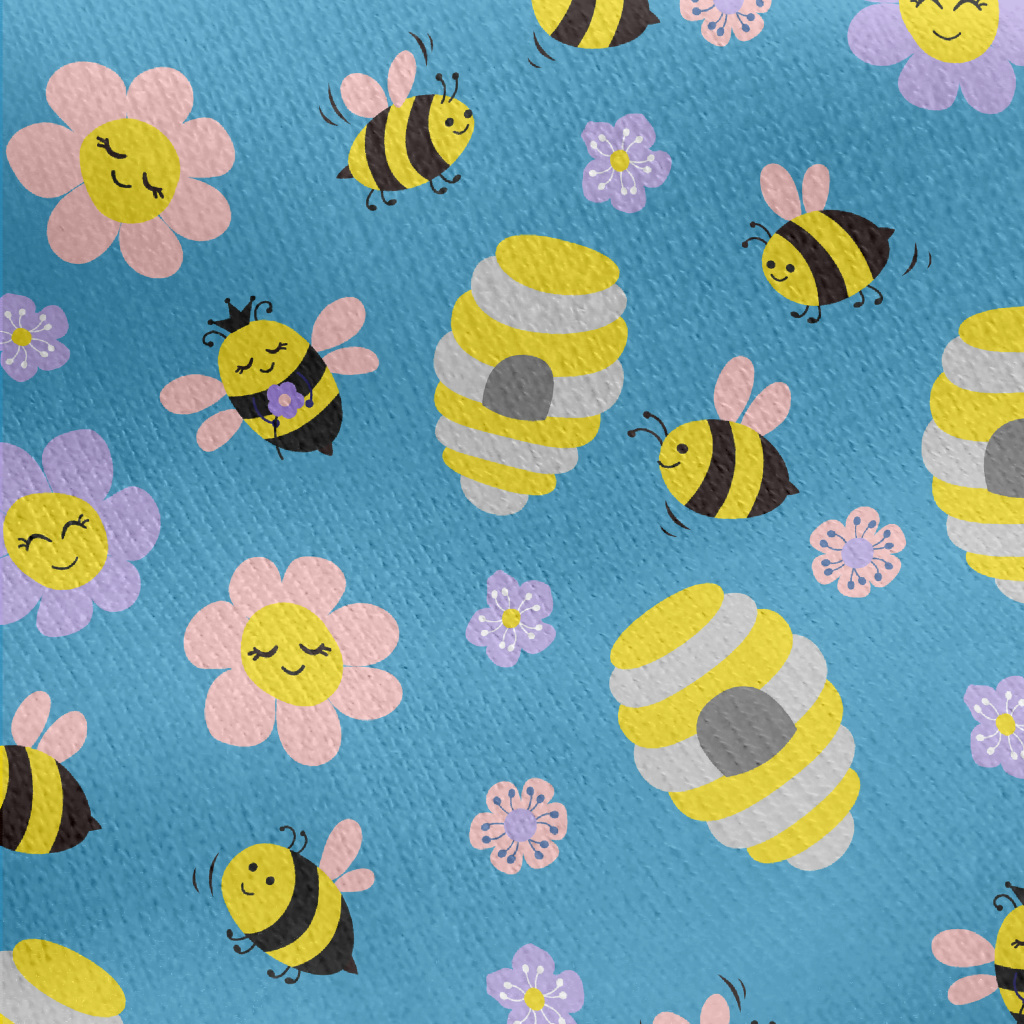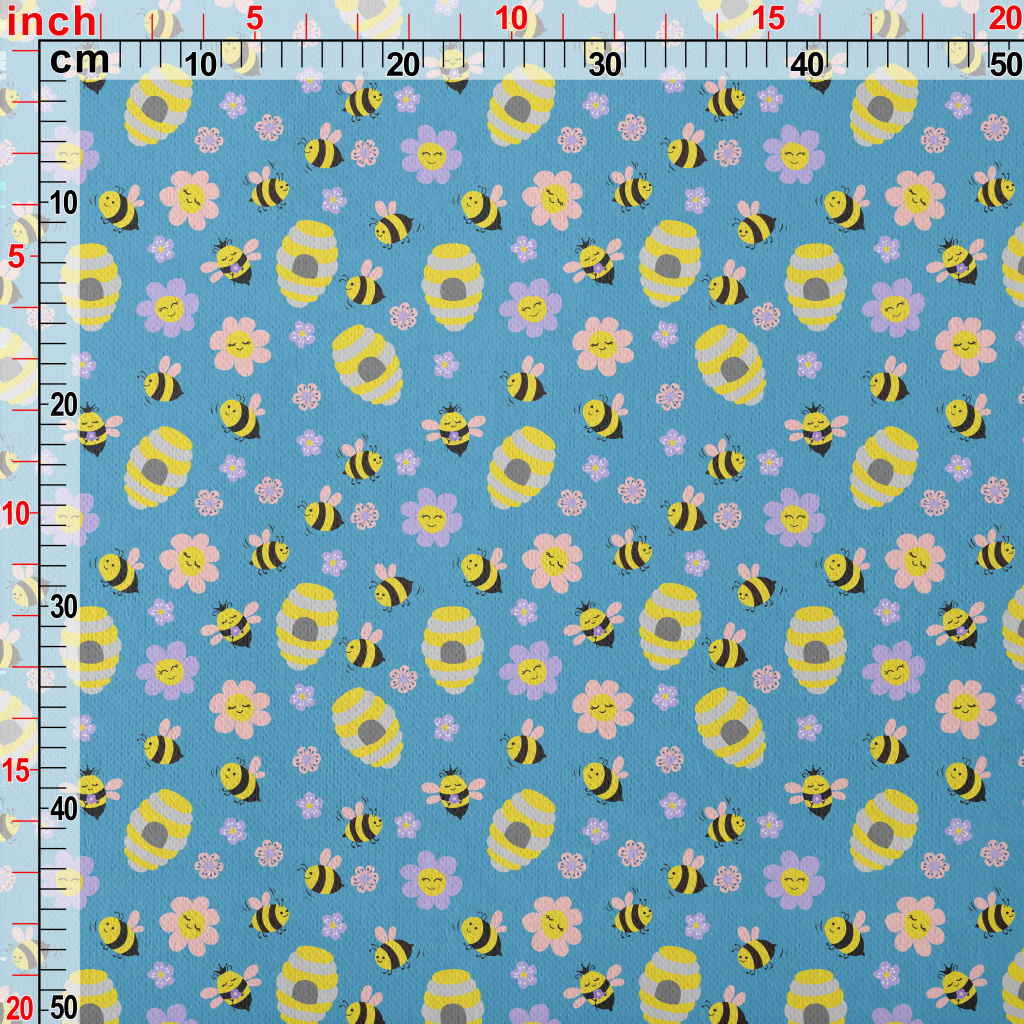 卡通蜜蜂和蜂窩花朵刷毛布(幅寬150公分)