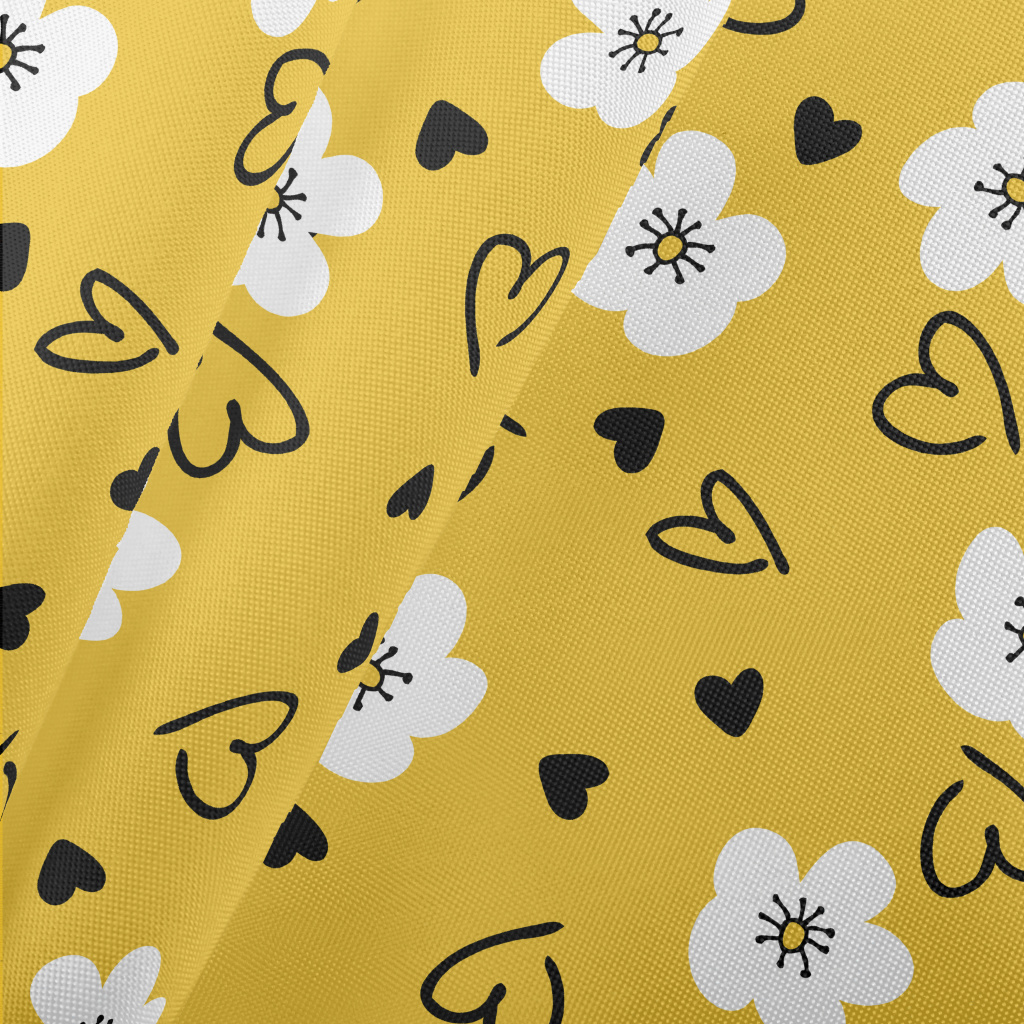 塗鴉白色花朵和愛心春亞紡(幅寬160公分)