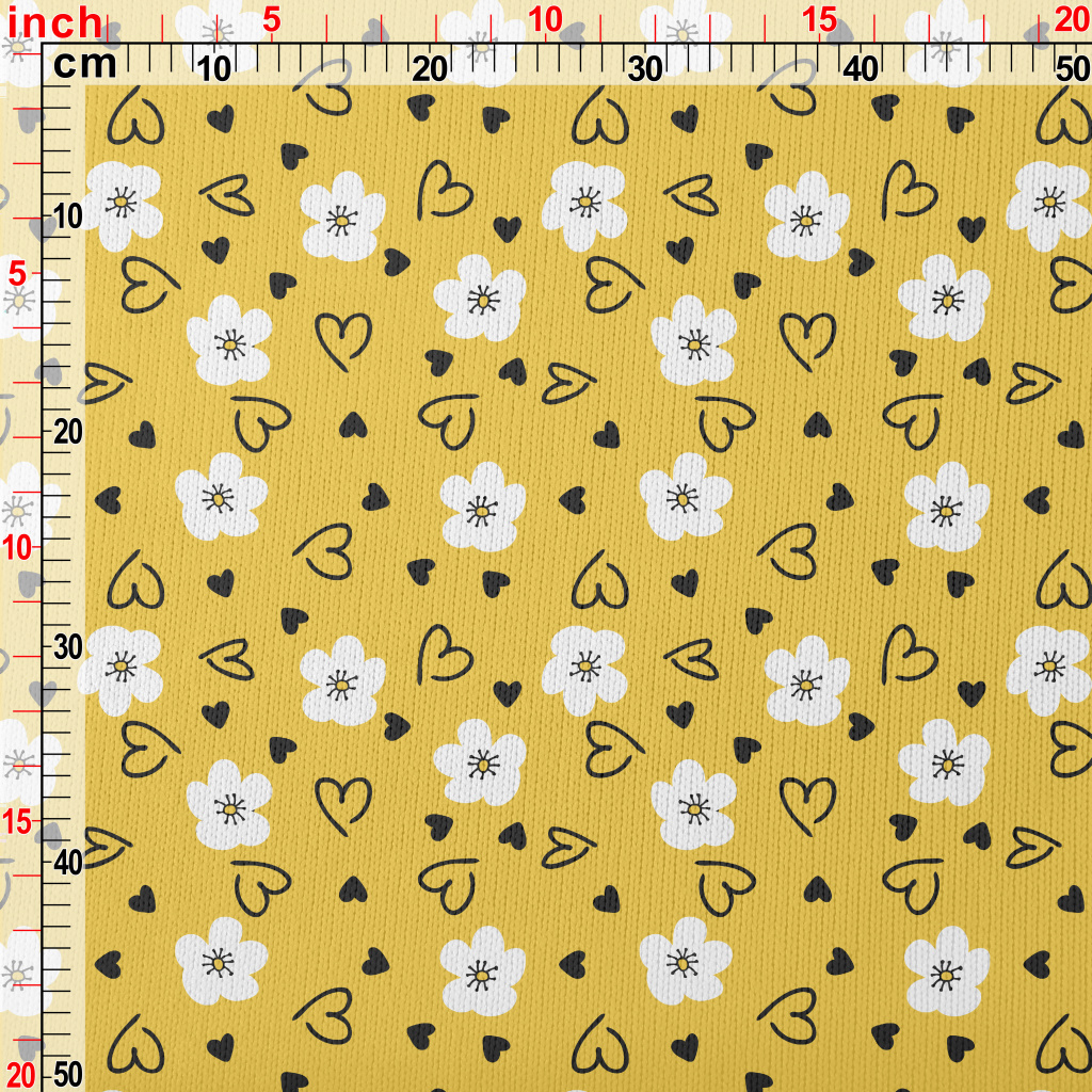 塗鴉白色花朵和愛心仿毛衣布(幅寬150公分)