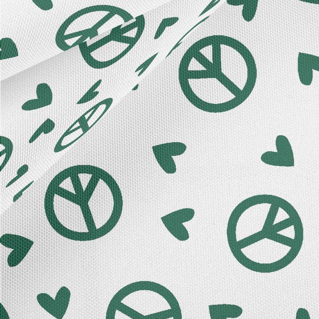綠色愛心與和平標誌圖案牛津布(幅寬150公分)