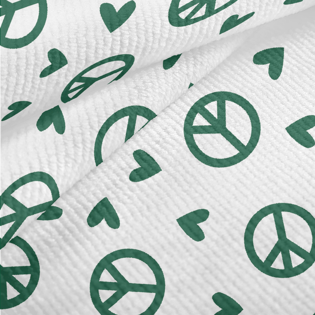 綠色愛心與和平標誌圖案毛巾布(幅寬160公分)
