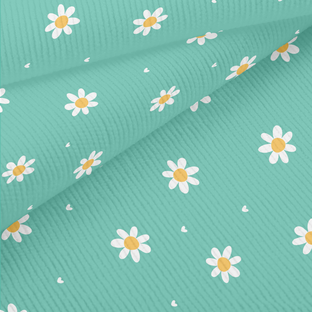 白色可愛花朵和愛心燈芯絨(幅寬150公分)
