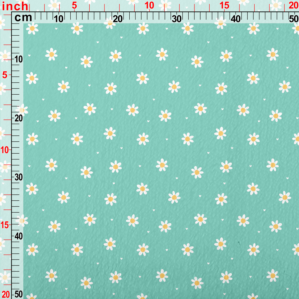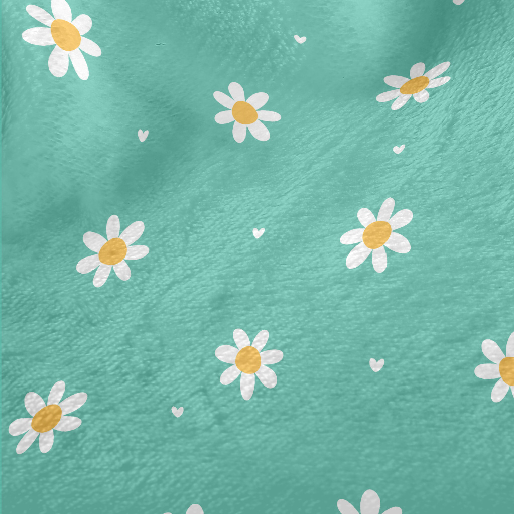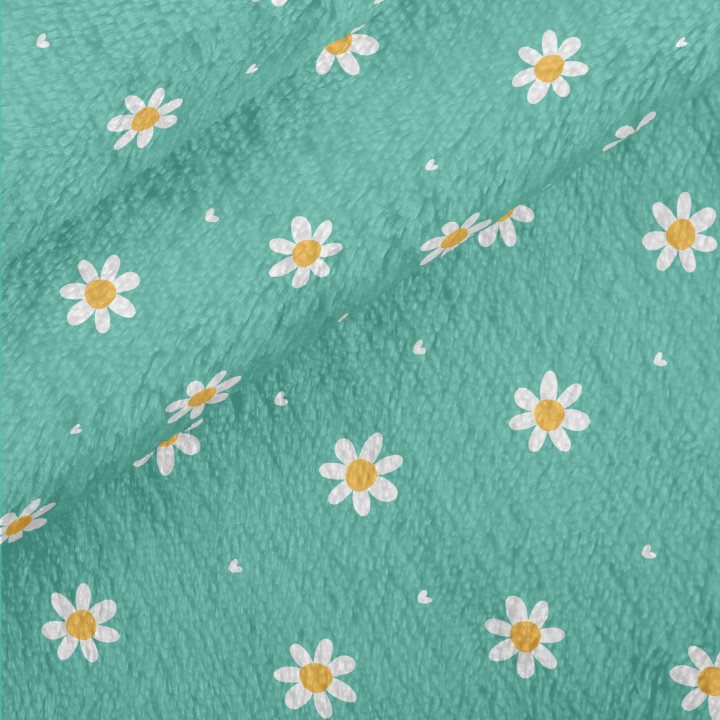 白色可愛花朵和愛心法蘭絨(幅寬150公分)