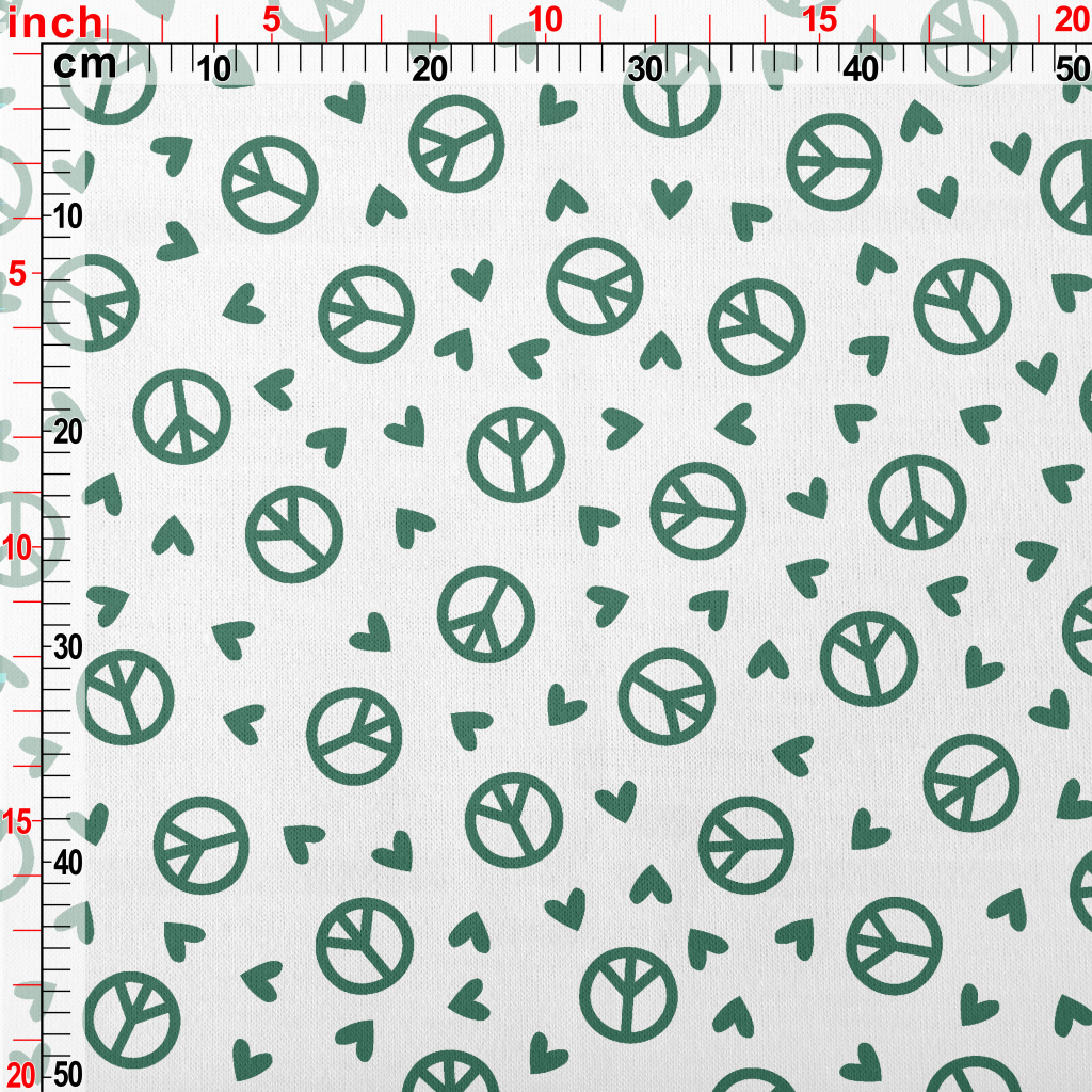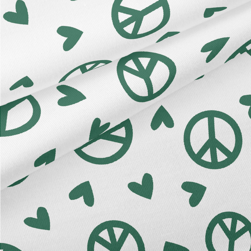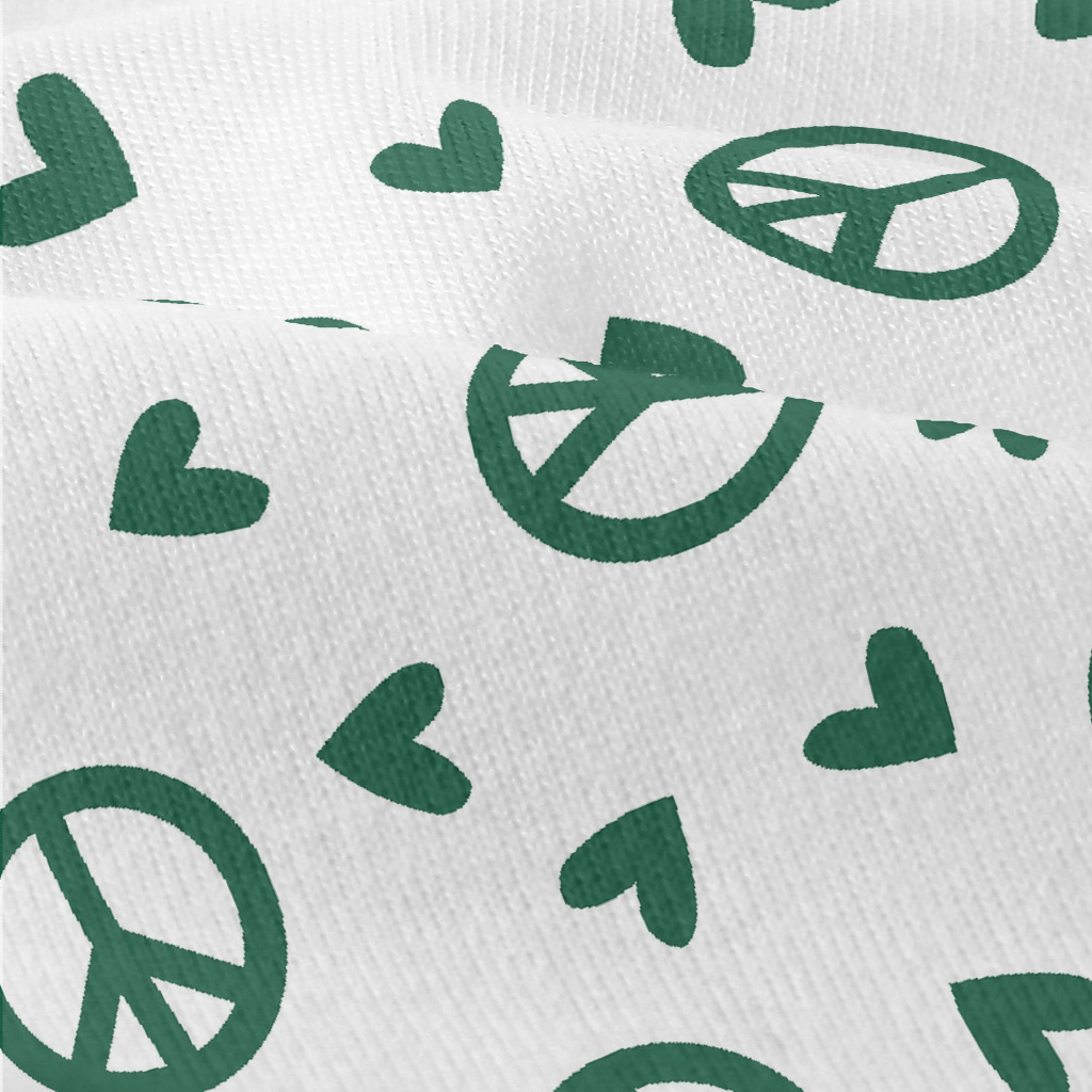 綠色愛心與和平標誌圖案仿棉布(幅寬150公分)