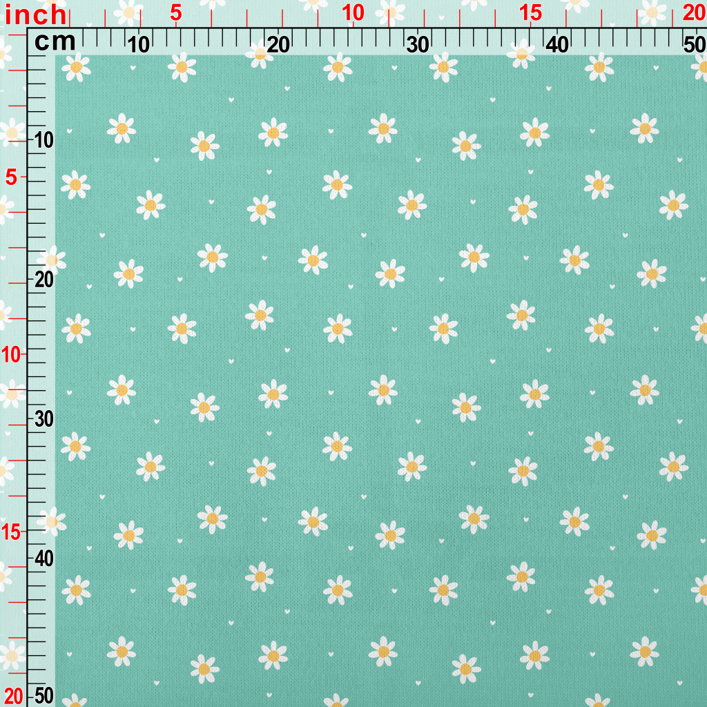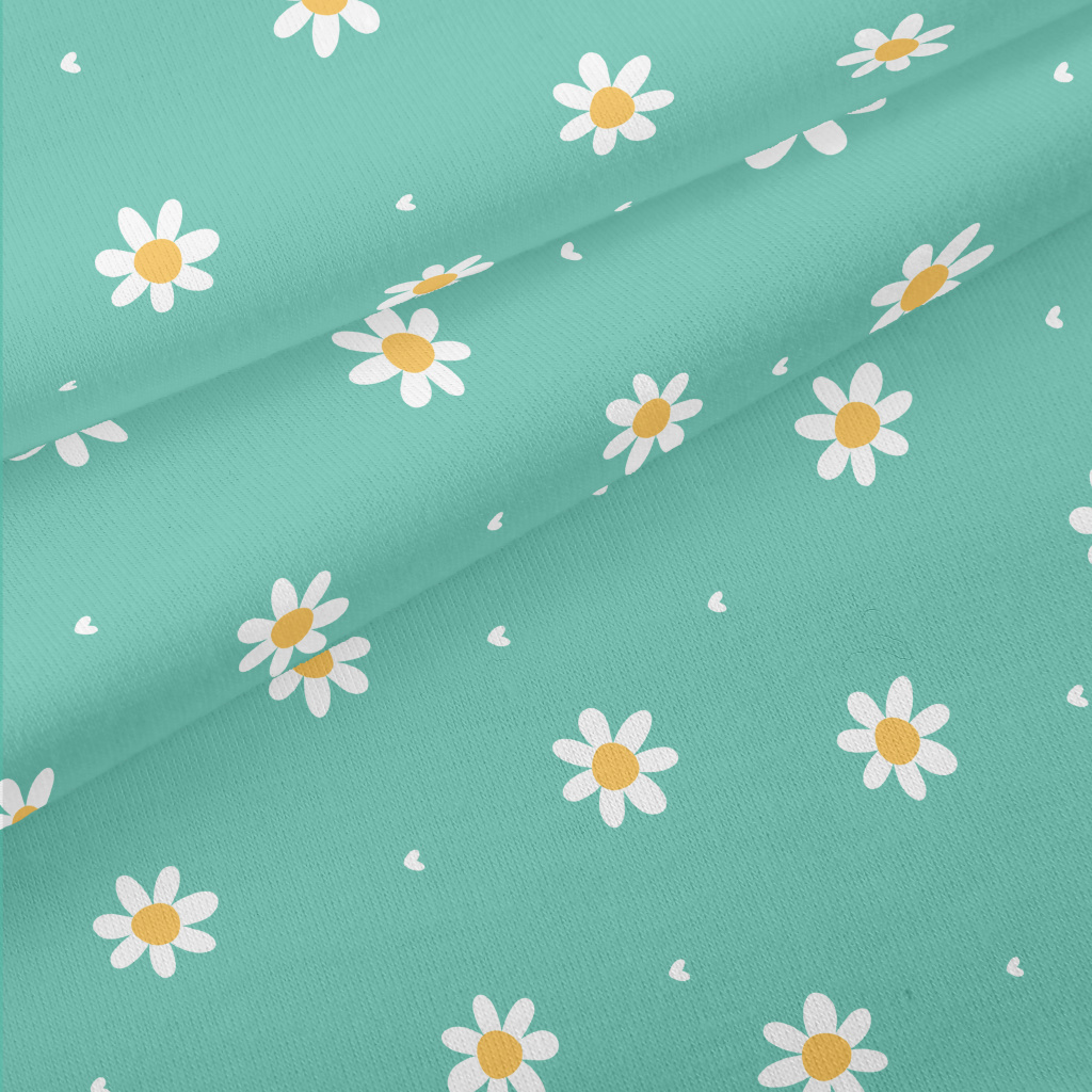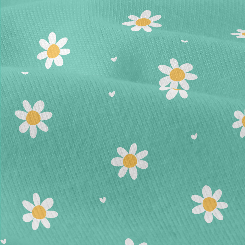 白色可愛花朵和愛心仿棉布(幅寬150公分)