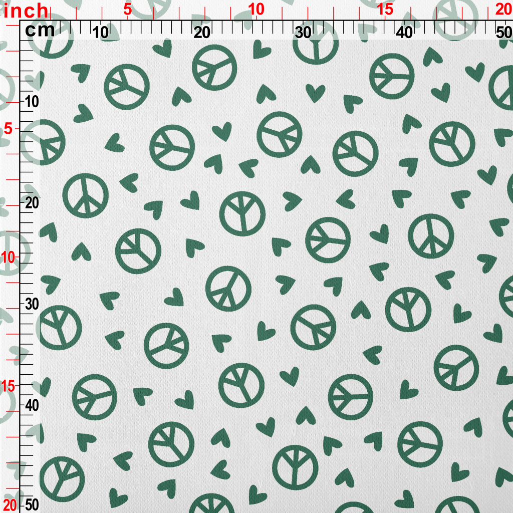 綠色愛心與和平標誌圖案刷毛布(幅寬150公分)