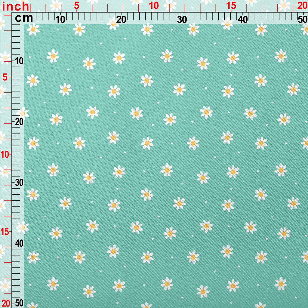白色可愛花朵和愛心厚棉布(幅寬150公分)