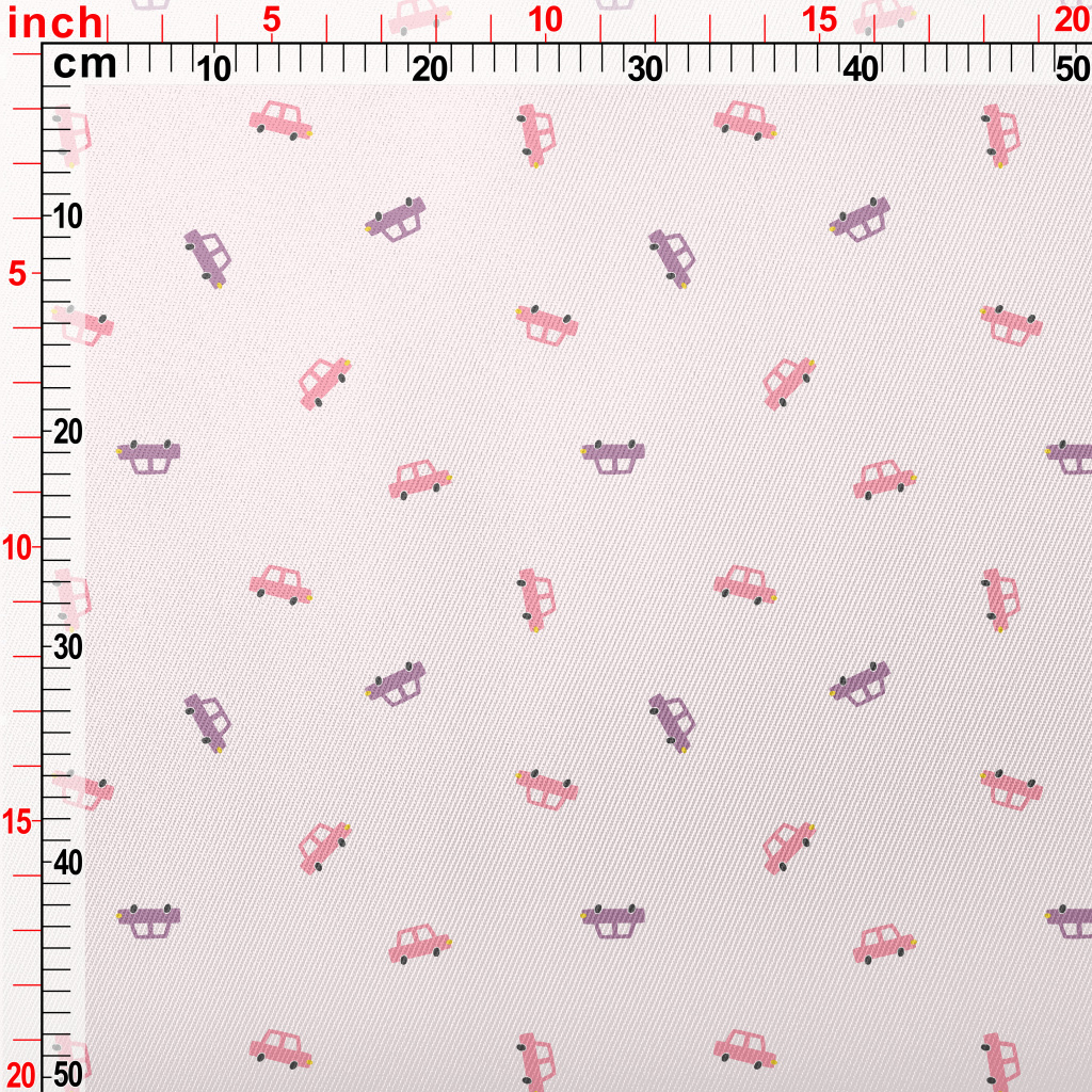 小巧粉色紫色汽車厚棉布(幅寬150公分)