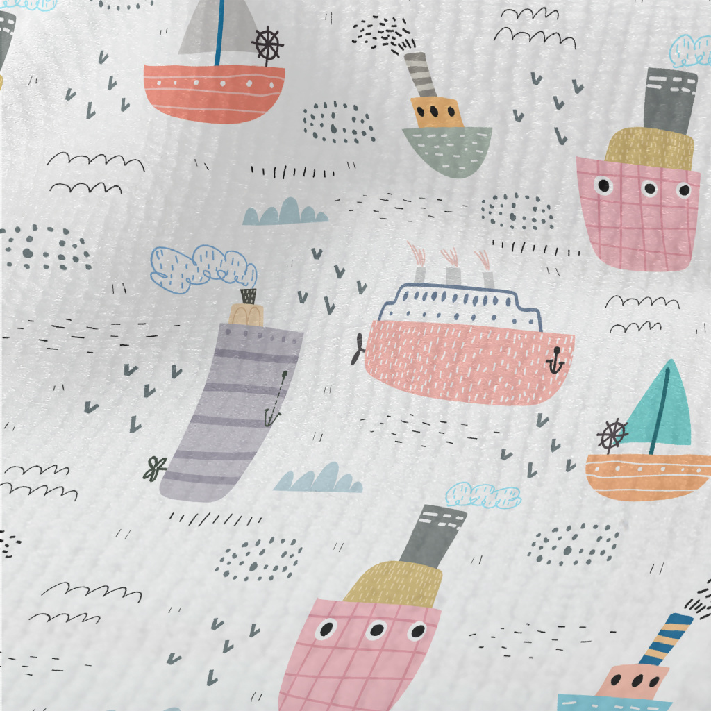 可愛塗鴉各種船隻毛巾布(幅寬160公分)