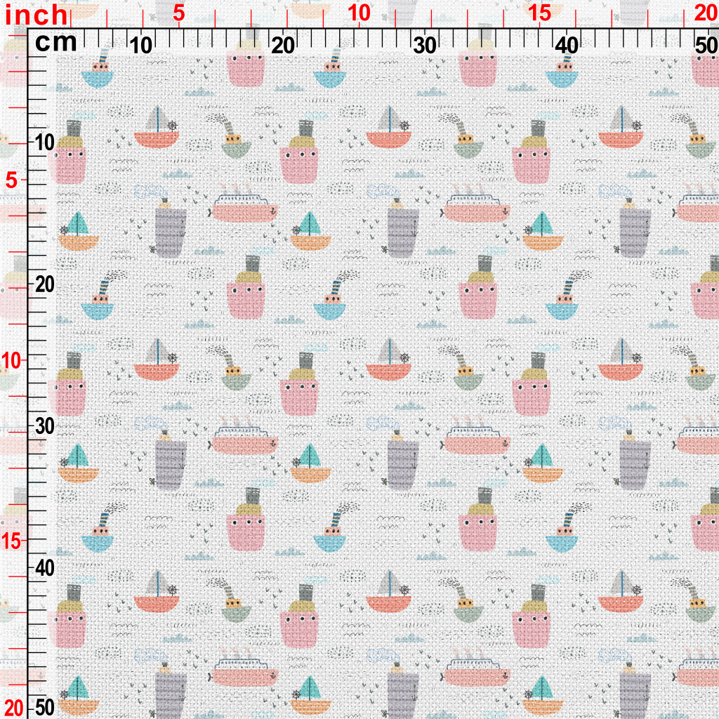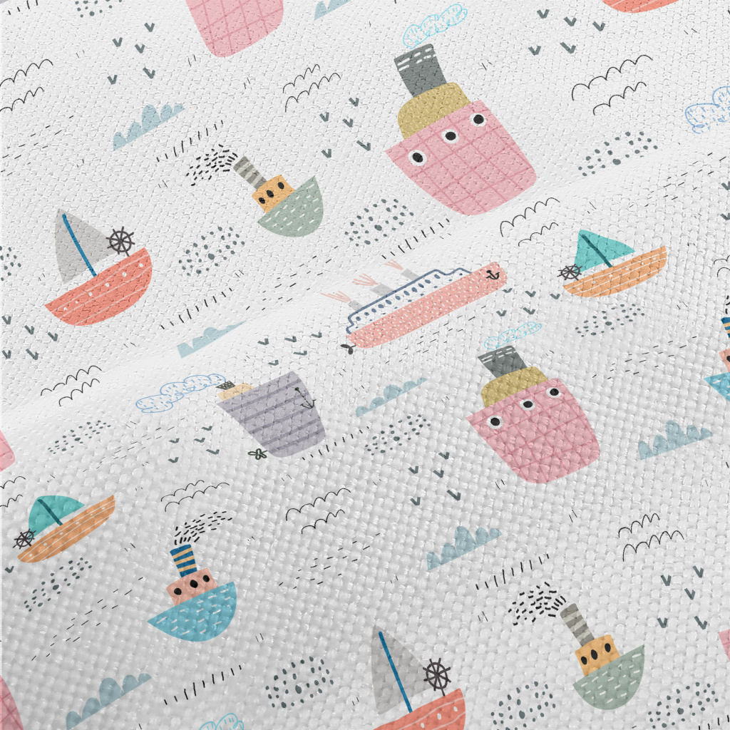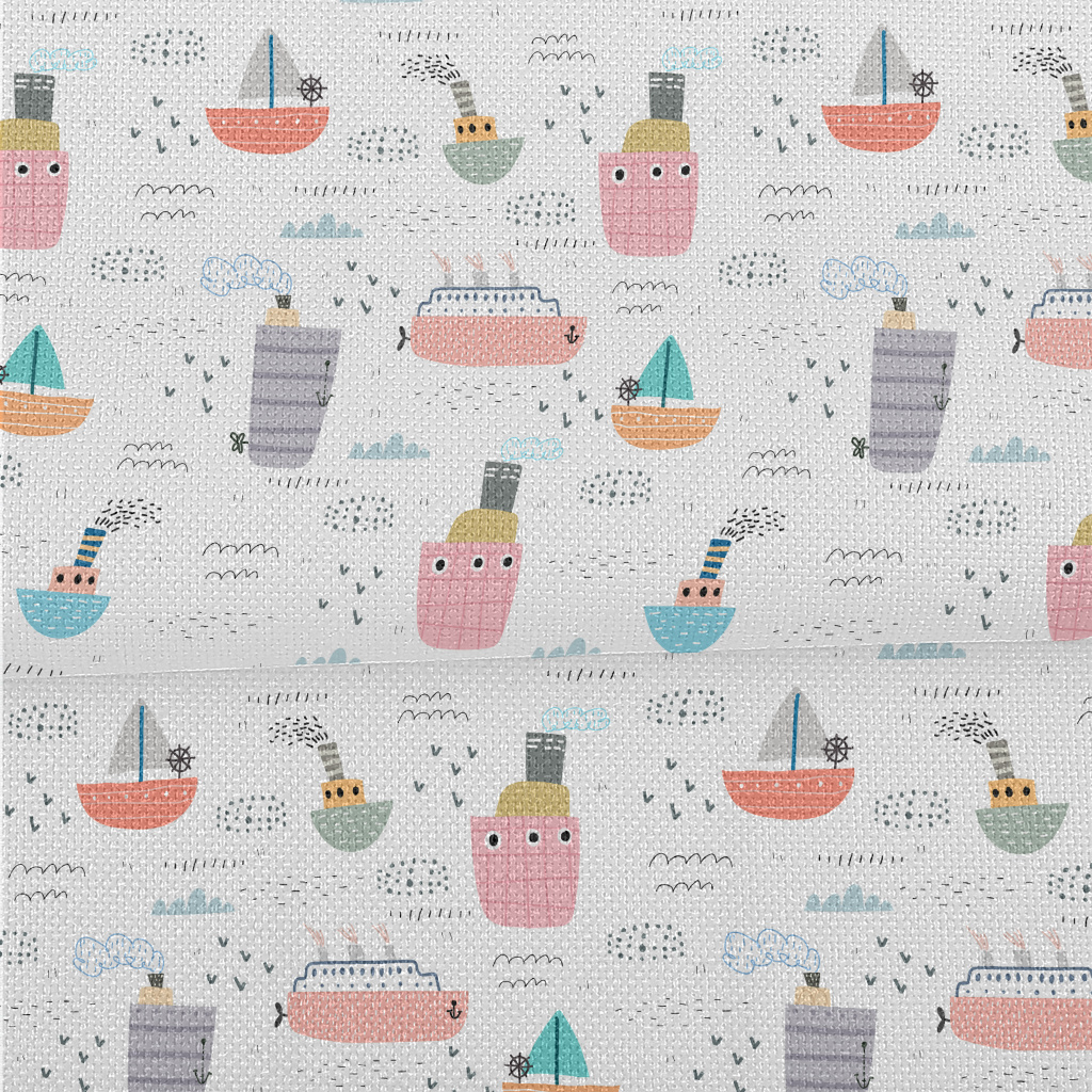 可愛塗鴉各種船隻麻布(幅寬150公分)