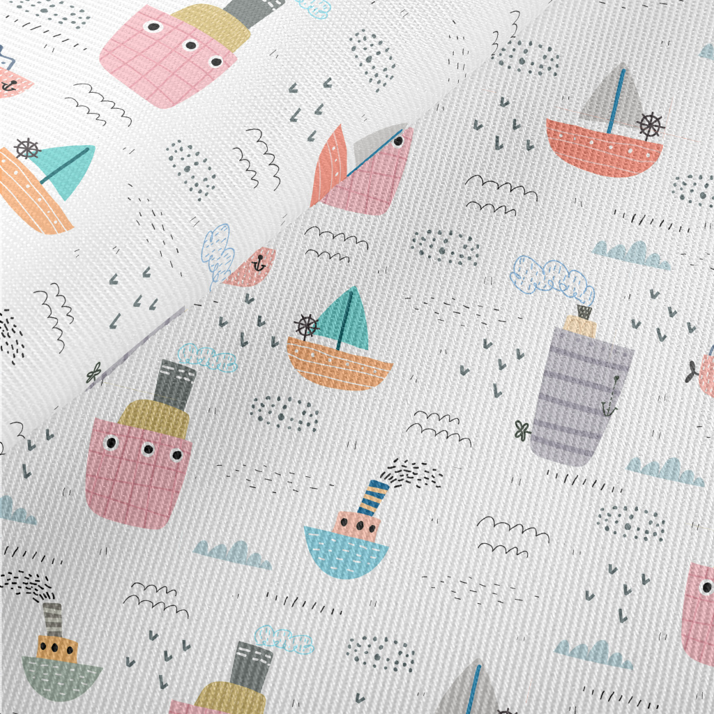可愛塗鴉各種船隻斜紋布(幅寬150公分)