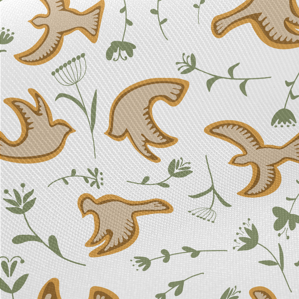 鴿子和花朵斜紋布(幅寬150公分)