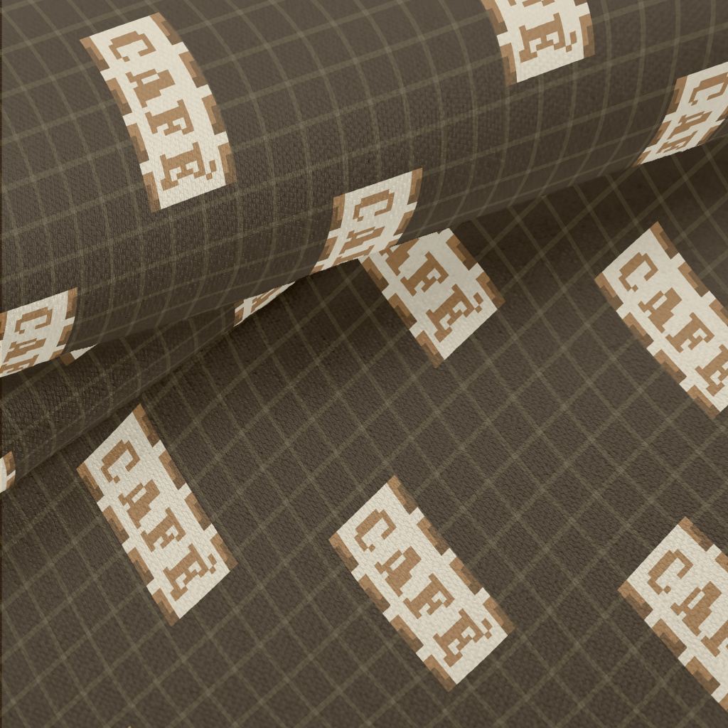 像素風格的咖啡廳文字竹節麻(幅寬150公分)