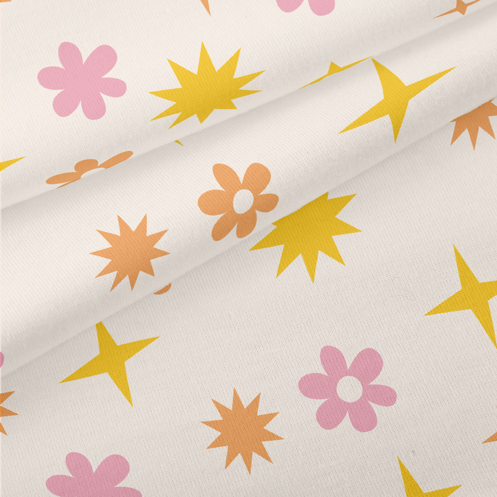 彩色花朵星星圖案仿棉布(幅寬150公分)