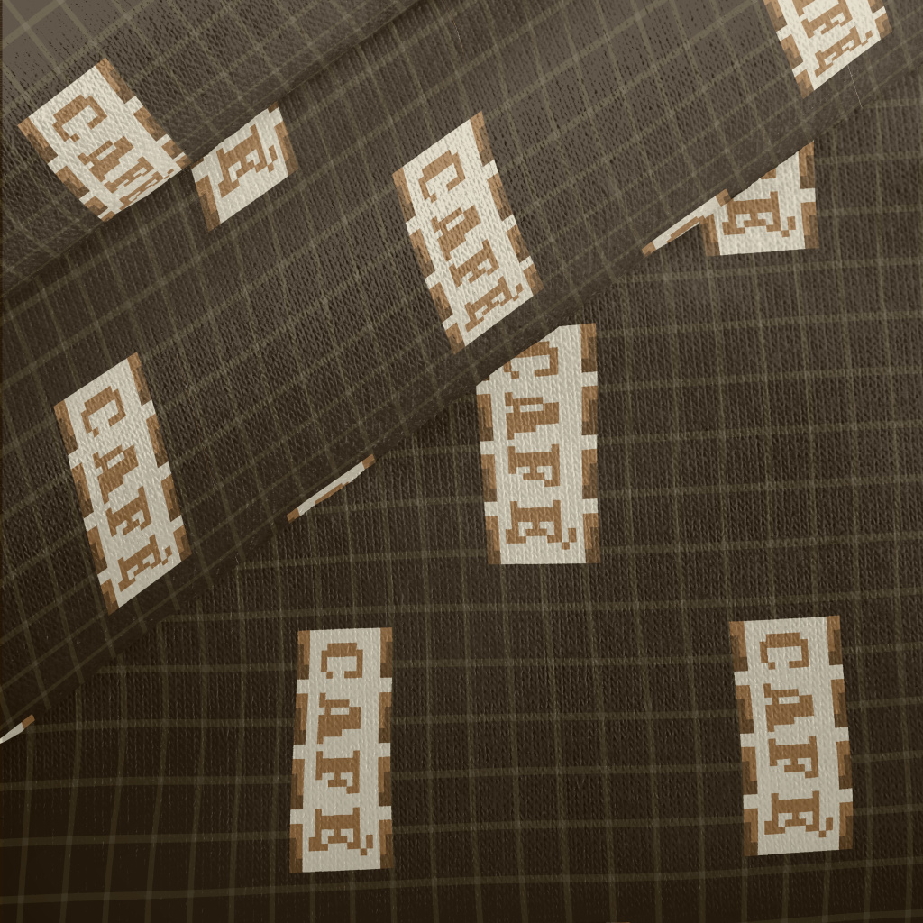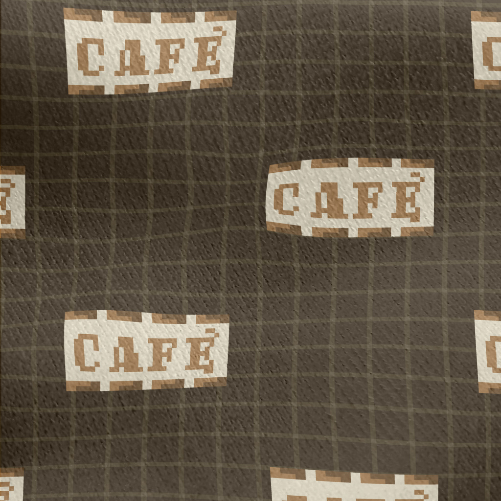 像素風格的咖啡廳文字刷毛布(幅寬150公分)