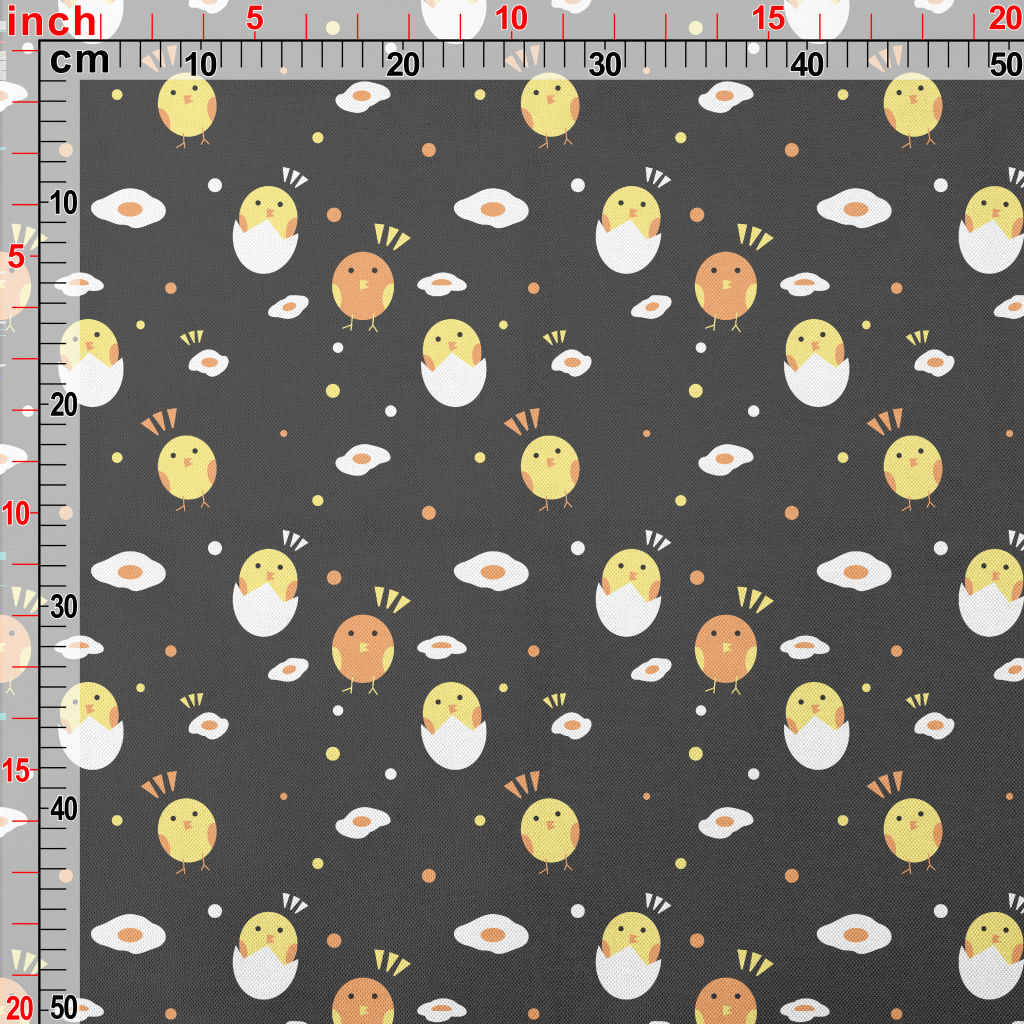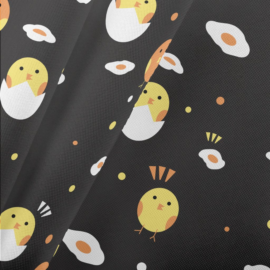 可愛塗鴉小雞和荷包蛋春亞紡(幅寬160公分)