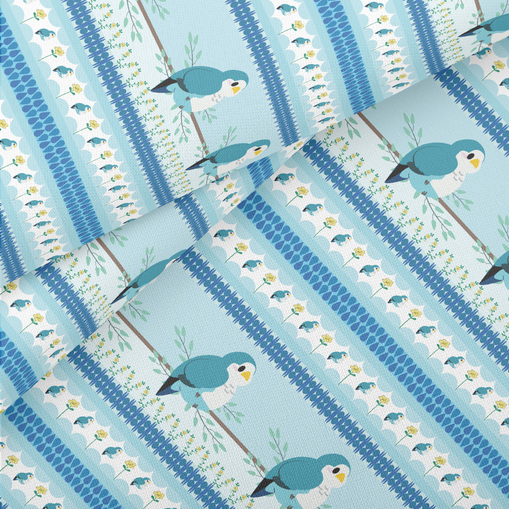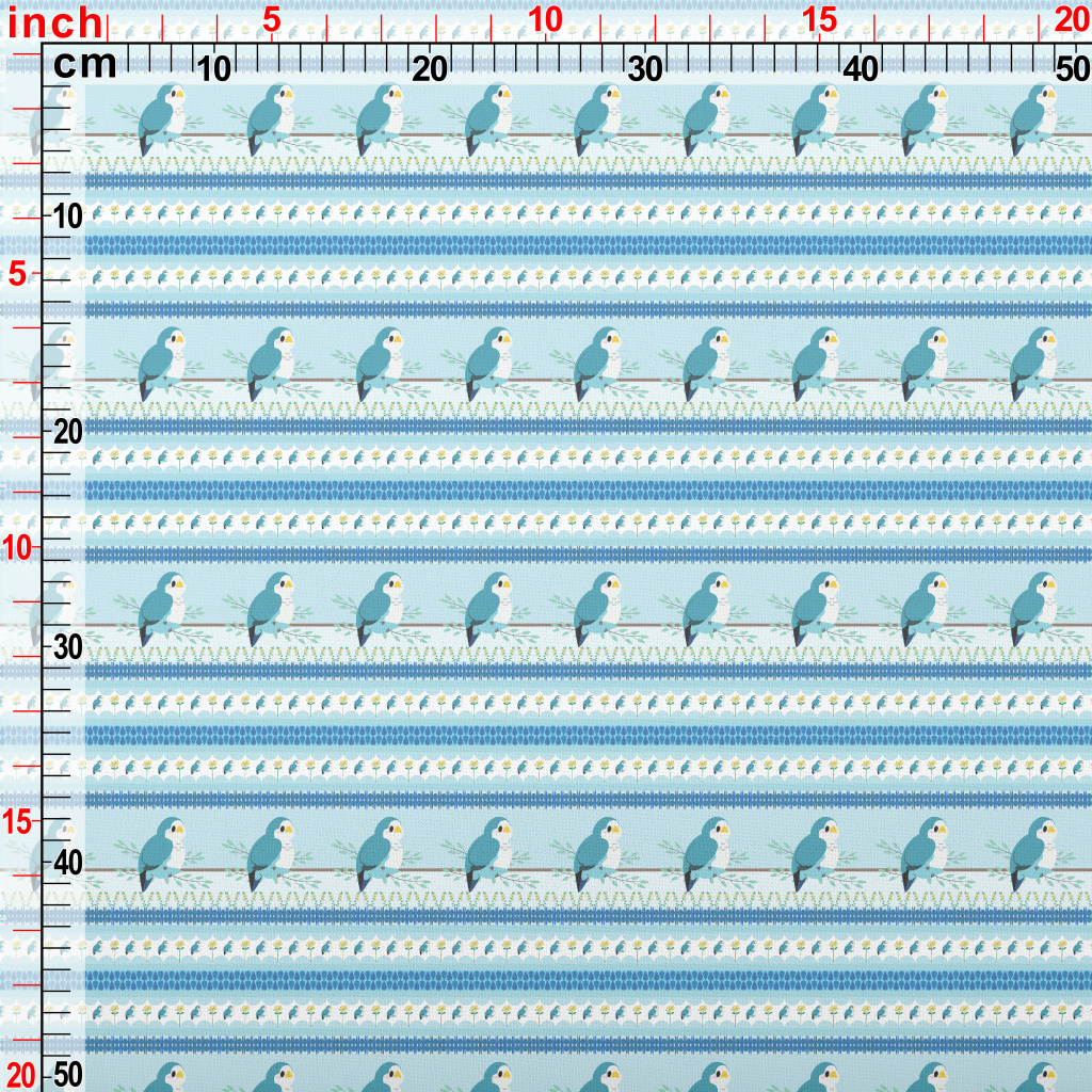可愛胖胖藍鸚鵡和花朵薄棉布(幅寬150公分)