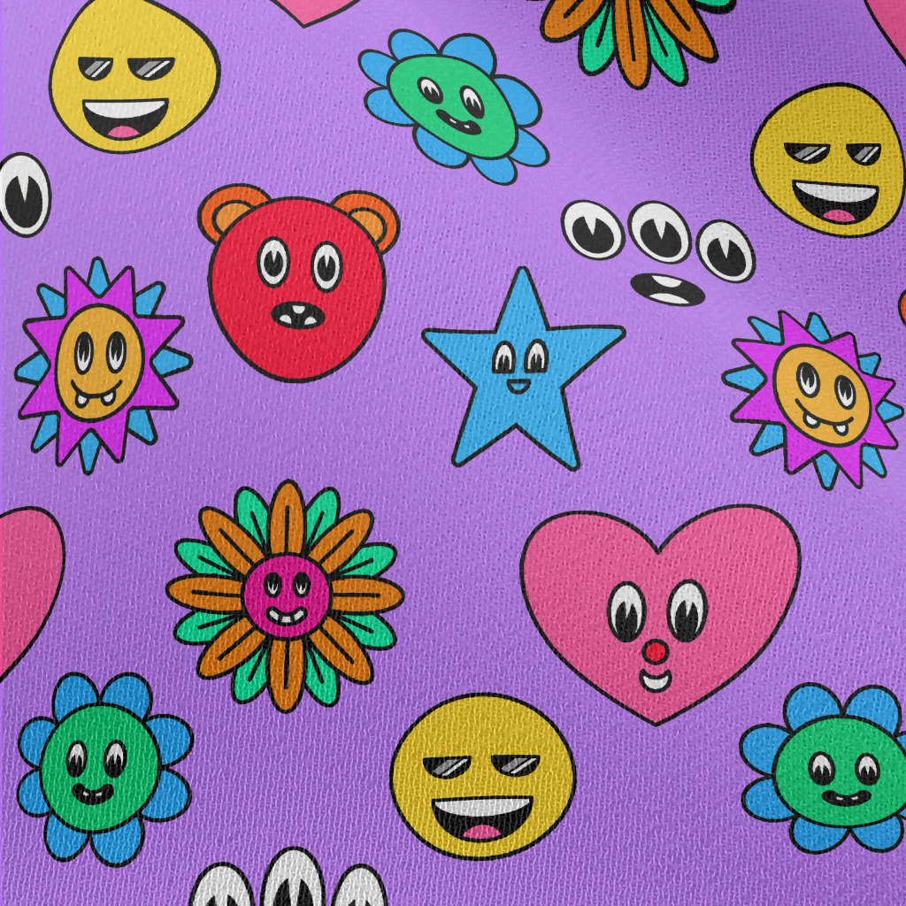 美式卡通愛心花朵星星圖案雪紡布(幅寬150公分)