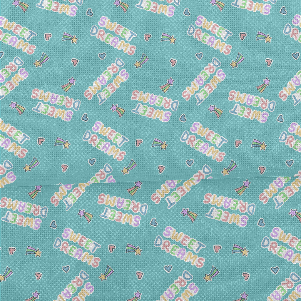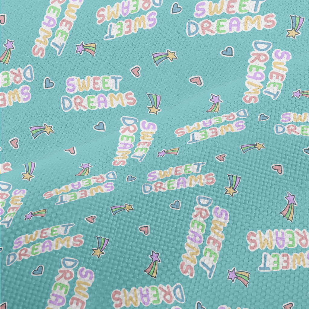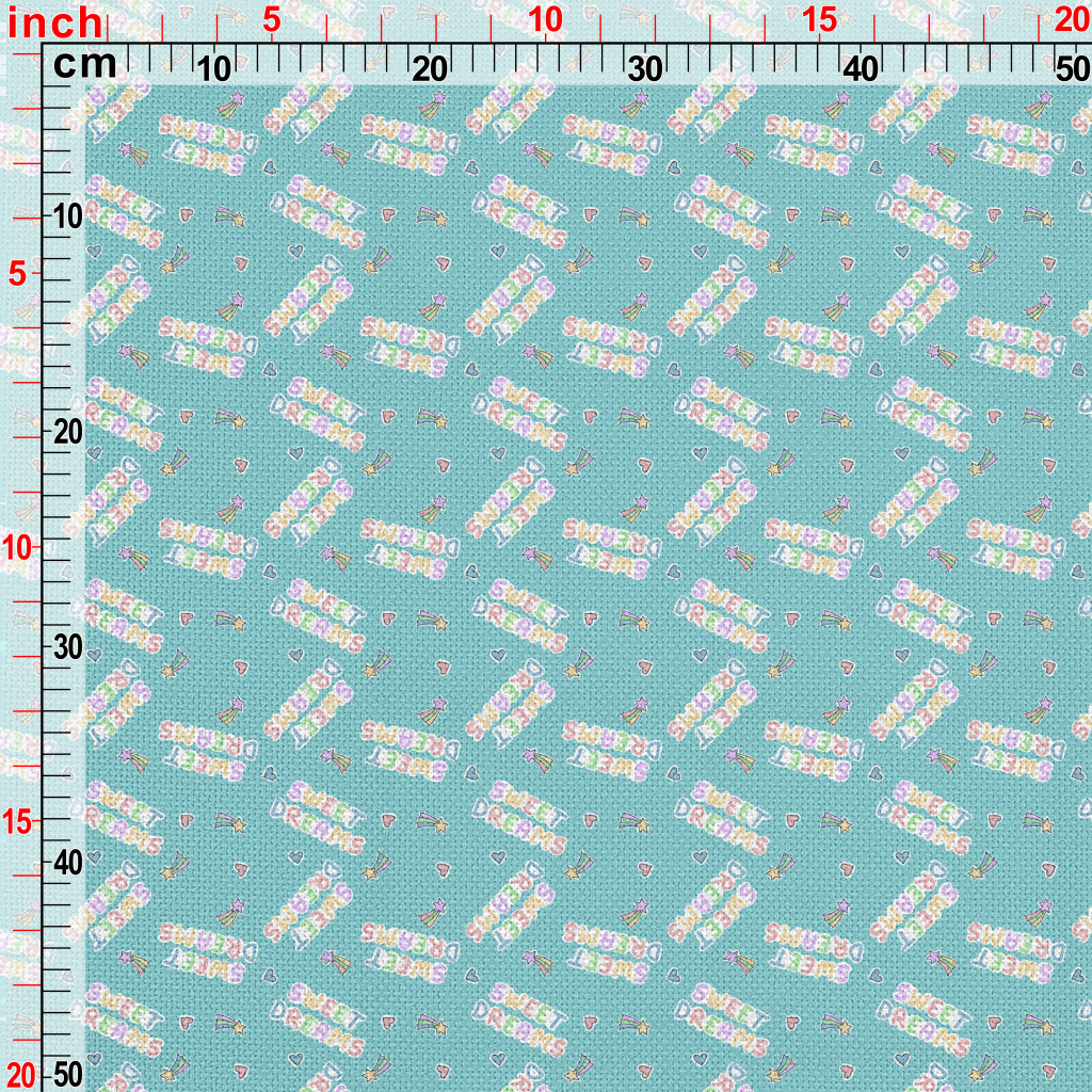 甜蜜夢想英文和愛心星星麻布(幅寬150公分)