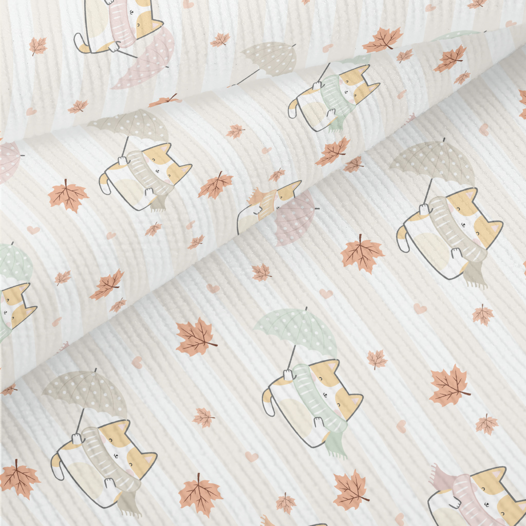 秋季圍巾撐傘貓咪燈芯絨(幅寬150公分)