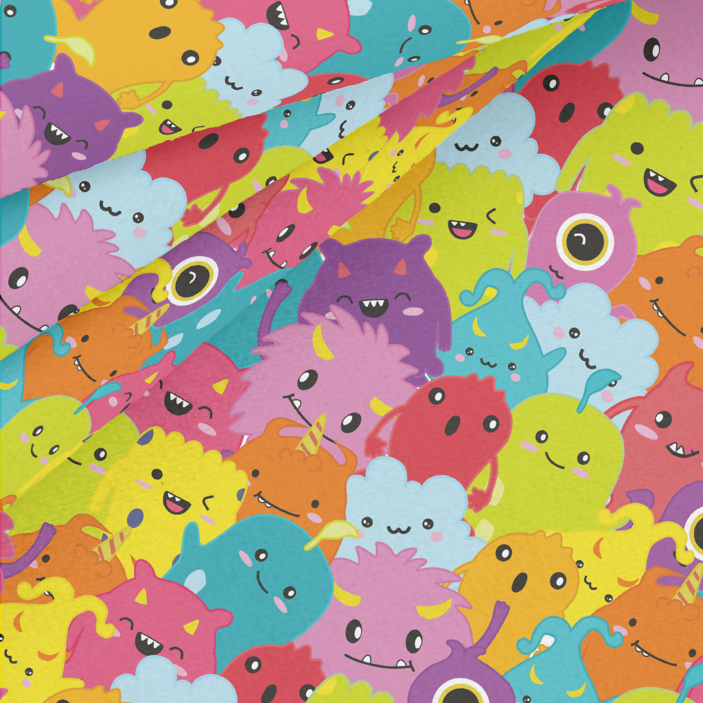 可愛彩色美式怪物水晶絨(幅寬160公分)