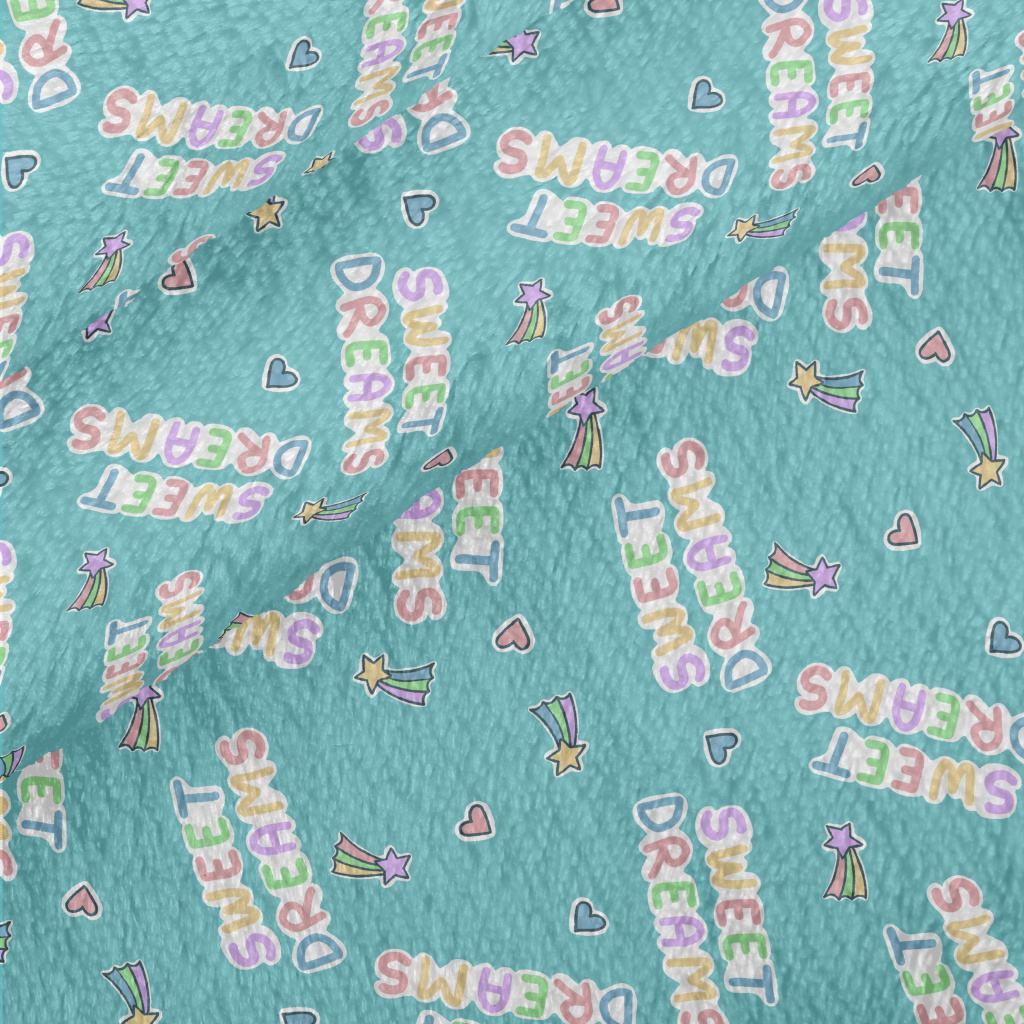 甜蜜夢想英文和愛心星星法蘭絨(幅寬150公分)