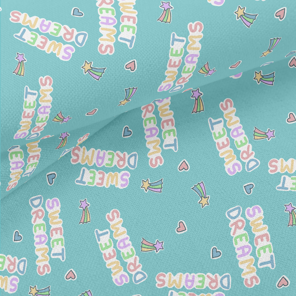 甜蜜夢想英文和愛心星星竹節麻(幅寬150公分)