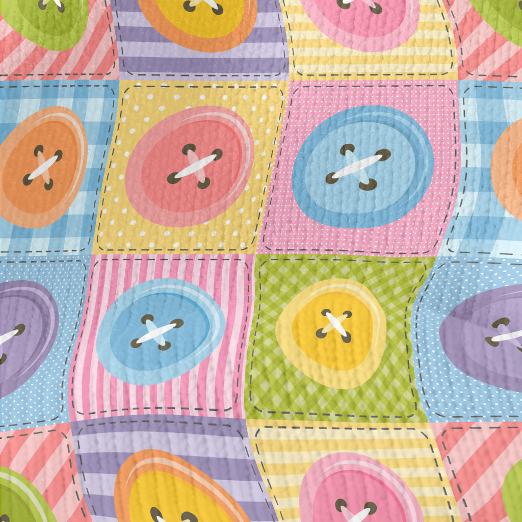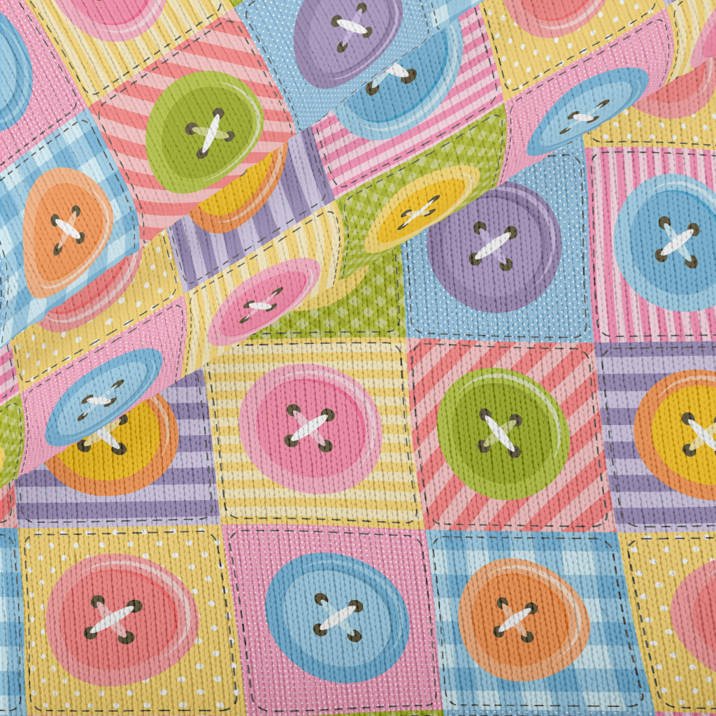 彩色鈕扣縫紉幾何圖仿毛衣布(幅寬150公分)