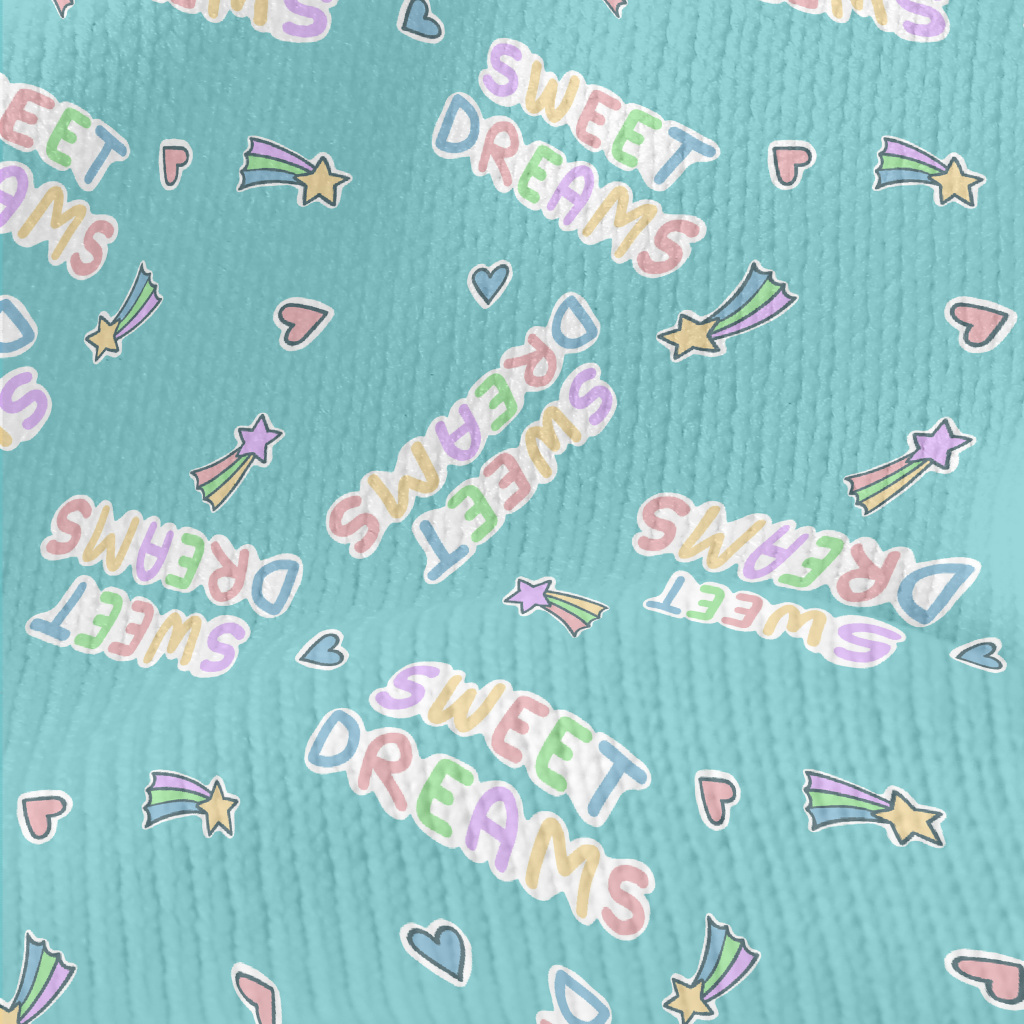 甜蜜夢想英文和愛心星星仿毛衣布(幅寬150公分)