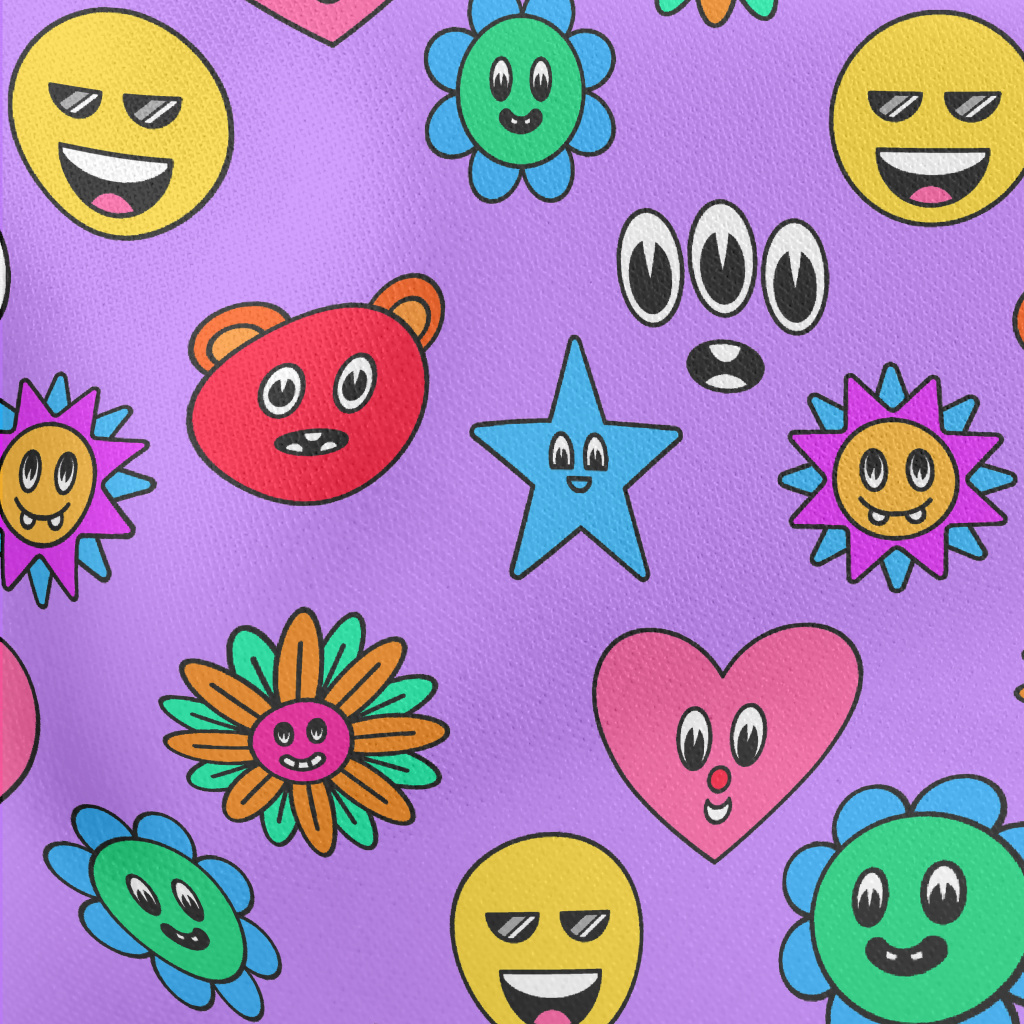 美式卡通愛心花朵星星圖案薄棉布(幅寬150公分)