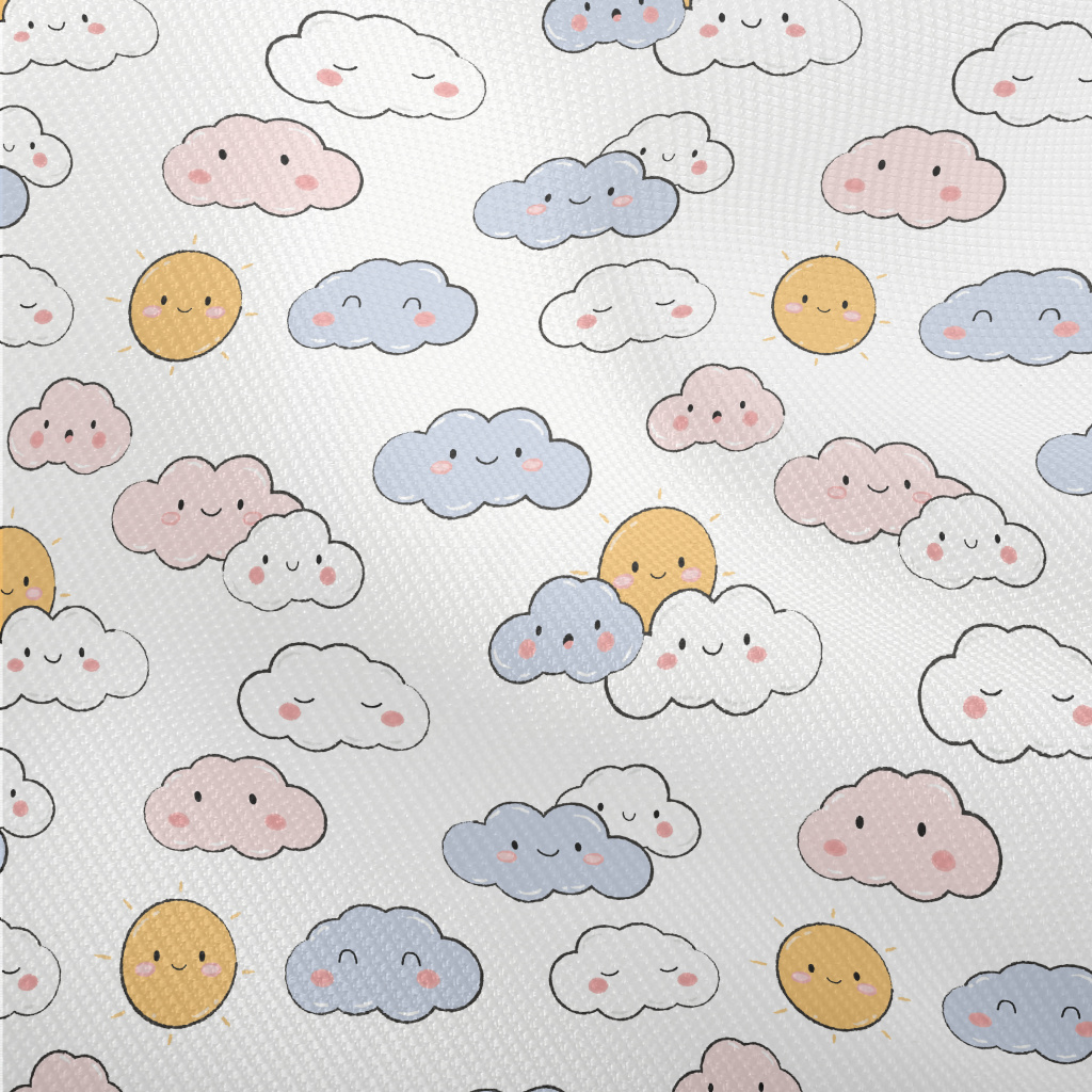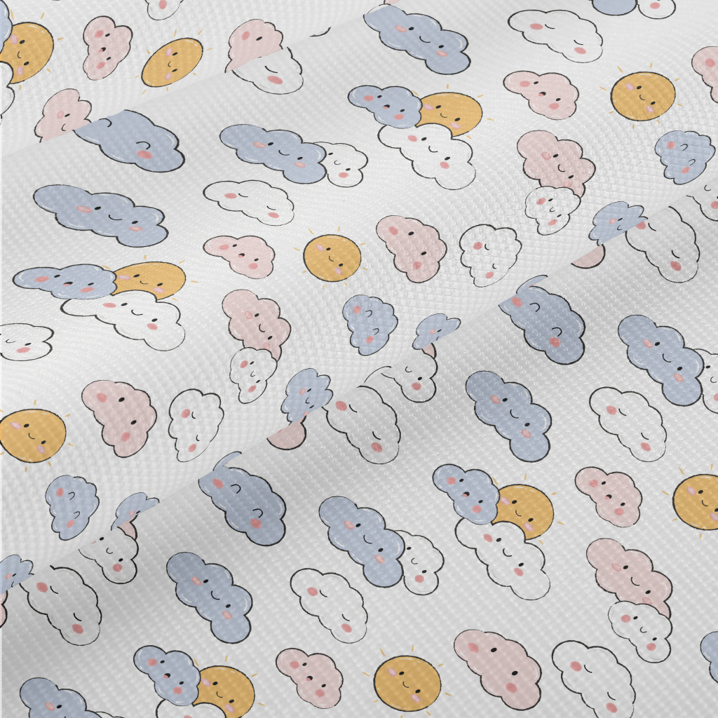 手繪彩色雲朵和太陽雙斜布(幅寬150公分)